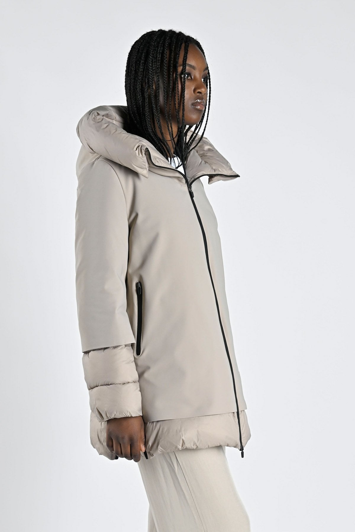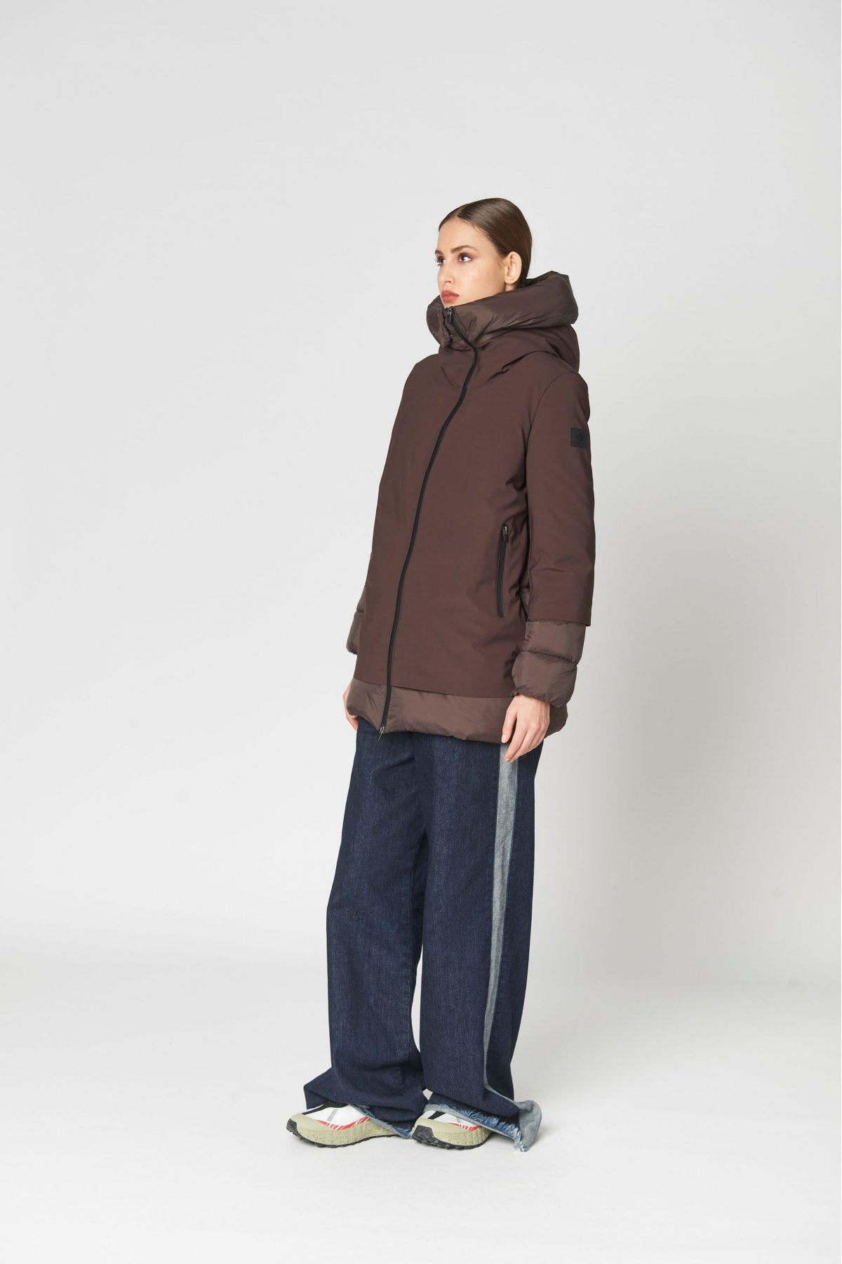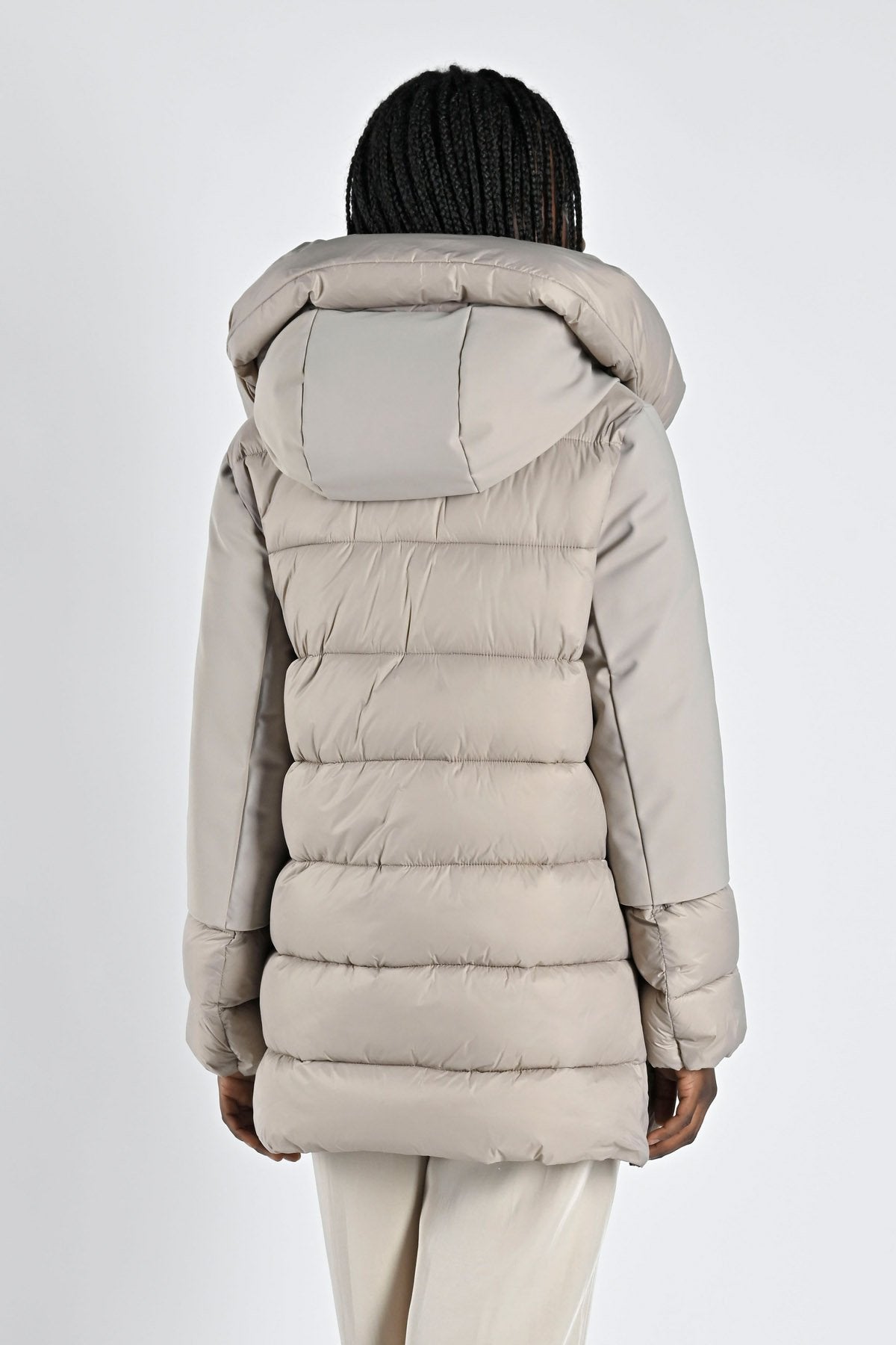 È il capospalla numero uno della stagione fredda, un vero e proprio must have per i mesi in cui il termometro scende al di sotto dello zero. Questo, realizzato in nylon resistente all'acqua e imbottito di 100% poliestere estremamente traspirante, ha un'aspetto glamour e metropolitano. Le sue caratteristiche vincenti sono il collo alto e la zip a contrasto, particolarità che gli conferiscono un look modaiolo ed elegante. Indossalo con un paio di pantaloni di tessuto maschile abbinati a un dolcevita a contrasto oppure, con una gonna dritta che arriva al ginocchio, un paio di stivali di suède e una borsa en pendant: il risultato sarà da dieci e lode.