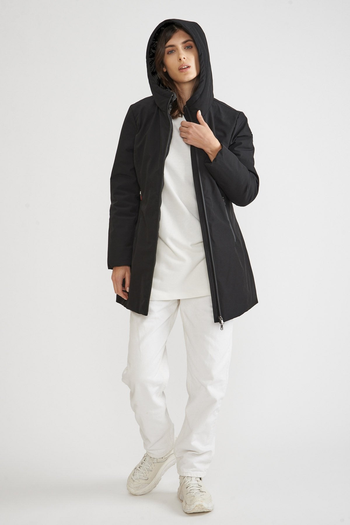 Yorkton Long è realizzata in tessuto resistente all'acqua e trattamento Bionic Finish ECO, con cappuccio e imbottitura in piuma ecologica. Dettaglio zip centrale e tasche waterproof. Perfetto per ripararsi dal freddo e dall'acqua. Vestibilità slim
