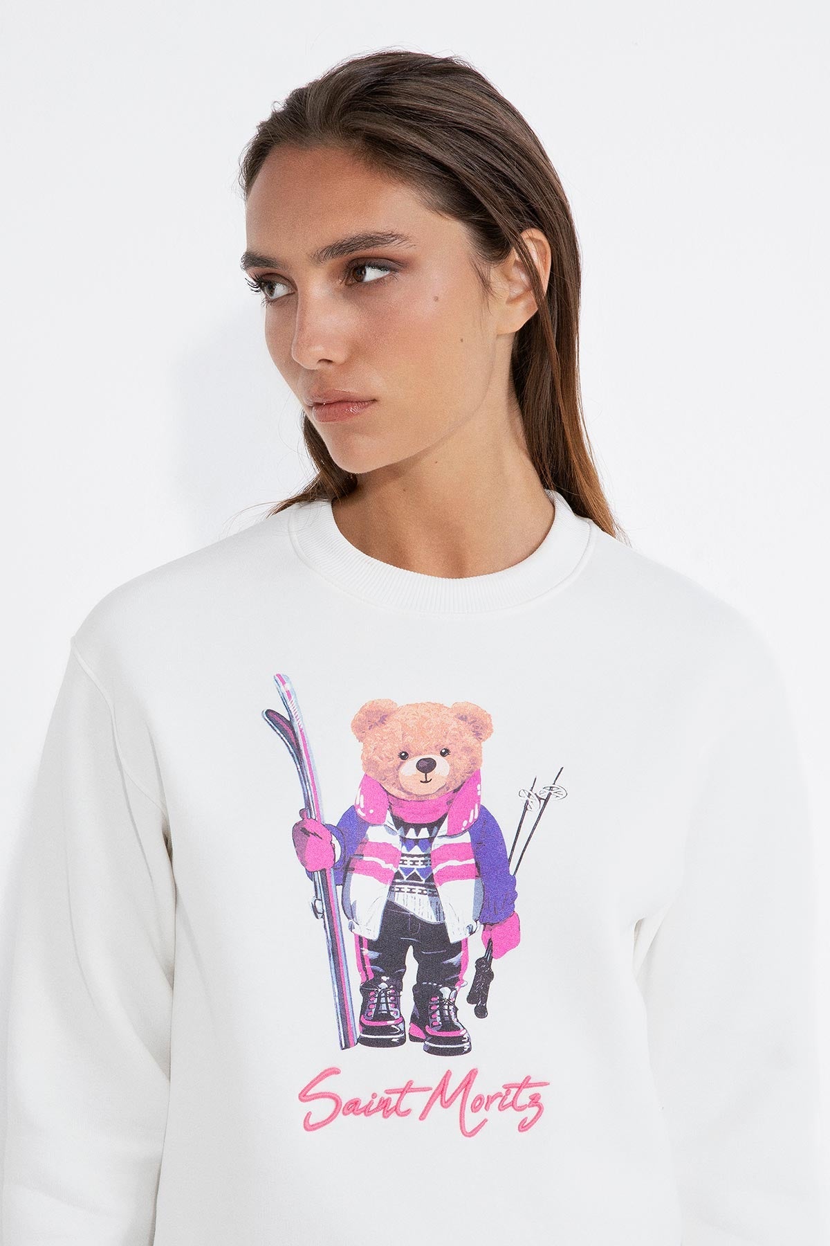 SUPERCULTURE Felpa girocollo invernale con stampa orsetto SAINT MORITZ
