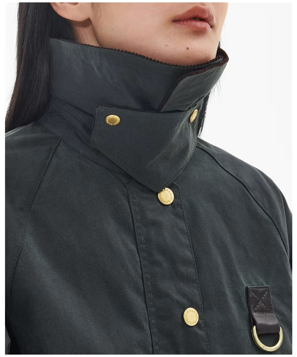 La giacca cerata Barbour Catton da donna offre uno stile classico che sicuramente amerai indossare per molte stagioni a venire. Il modello presenta un colletto oversize in cordoncino con gancio e barra in metallo, e presenta anche dettagli di design come ampie tasche con cerniera sul davanti per un tocco di praticità, un ampio anello a D con linguetta in pelle e il marchio Barbour sulla tasca sinistra.