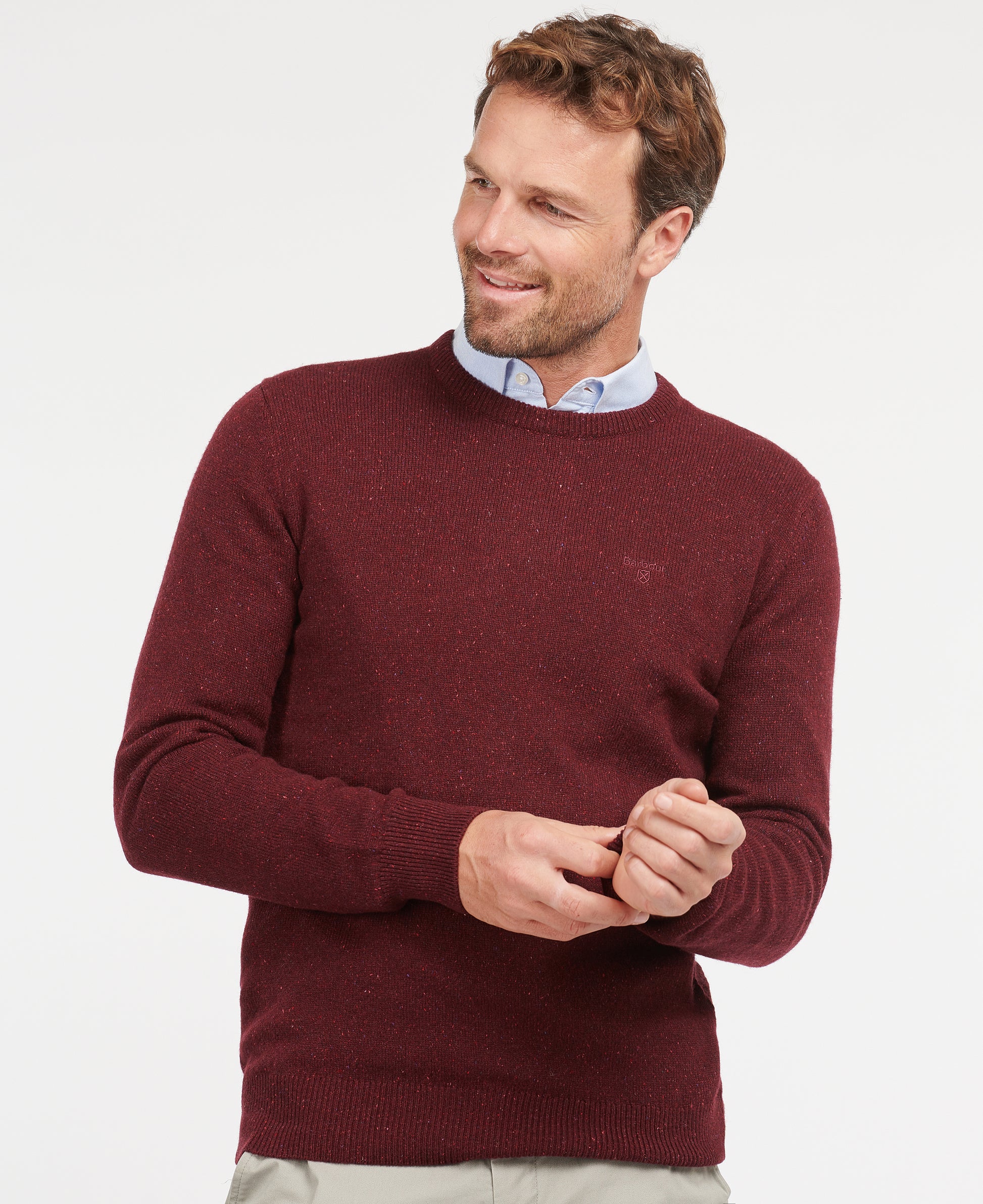La maglia Barbour essential tisbury crew in 100% lana è perfetta per l'inverno, da indossare da sola o con camicia, la sua caratteristica è una trama leggermente melange per cui il colore non è omogeneo ma è microtramato da piccolissimi puntini.