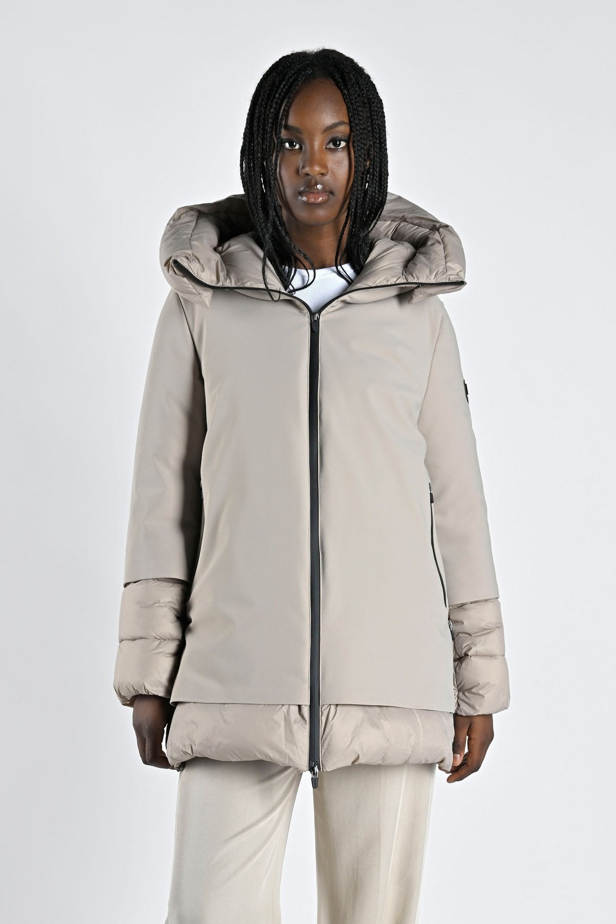 È il capospalla numero uno della stagione fredda, un vero e proprio must have per i mesi in cui il termometro scende al di sotto dello zero. Questo, realizzato in nylon resistente all'acqua e imbottito di 100% poliestere estremamente traspirante, ha un'aspetto glamour e metropolitano. Le sue caratteristiche vincenti sono il collo alto e la zip a contrasto, particolarità che gli conferiscono un look modaiolo ed elegante. Indossalo con un paio di pantaloni di tessuto maschile abbinati a un dolcevita a contrasto oppure, con una gonna dritta che arriva al ginocchio, un paio di stivali di suède e una borsa en pendant: il risultato sarà da dieci e lode.