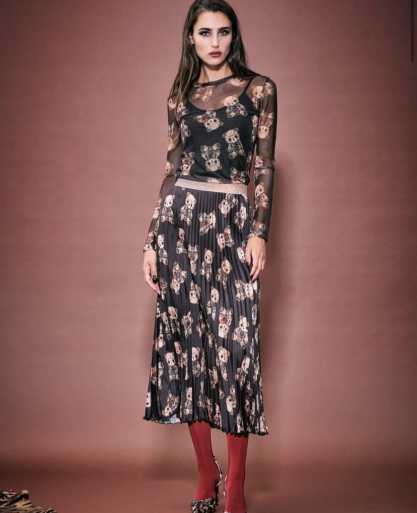 IL THE DELLE 5 Gonna plissè stampa orsetti, elastico lurex in vita, longuette.