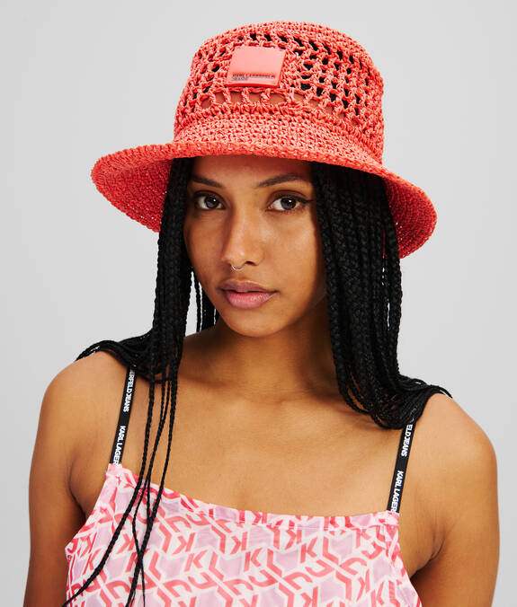 KARL LAGERFELD Cappello da pescatore in raffia intarsiato corallo