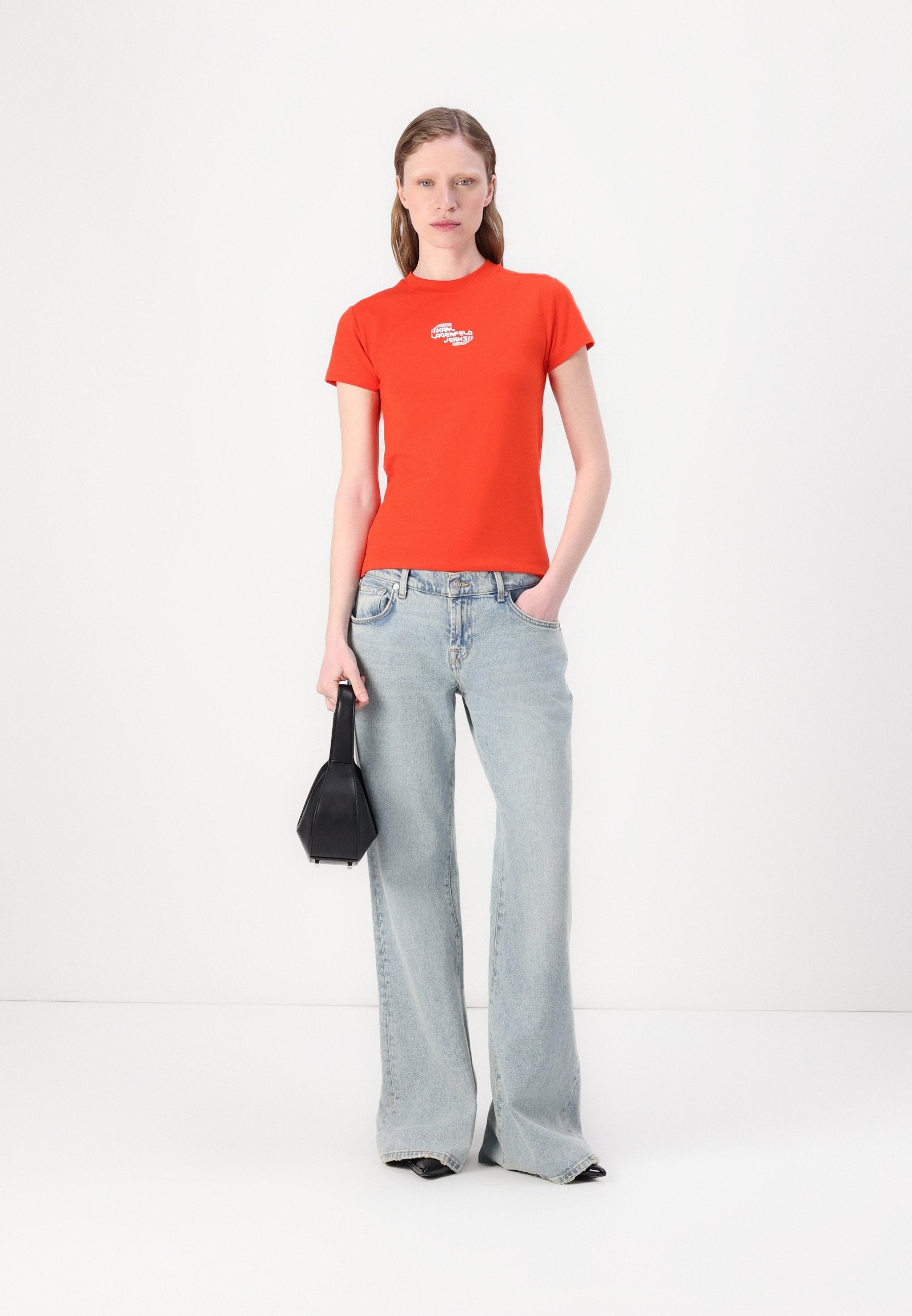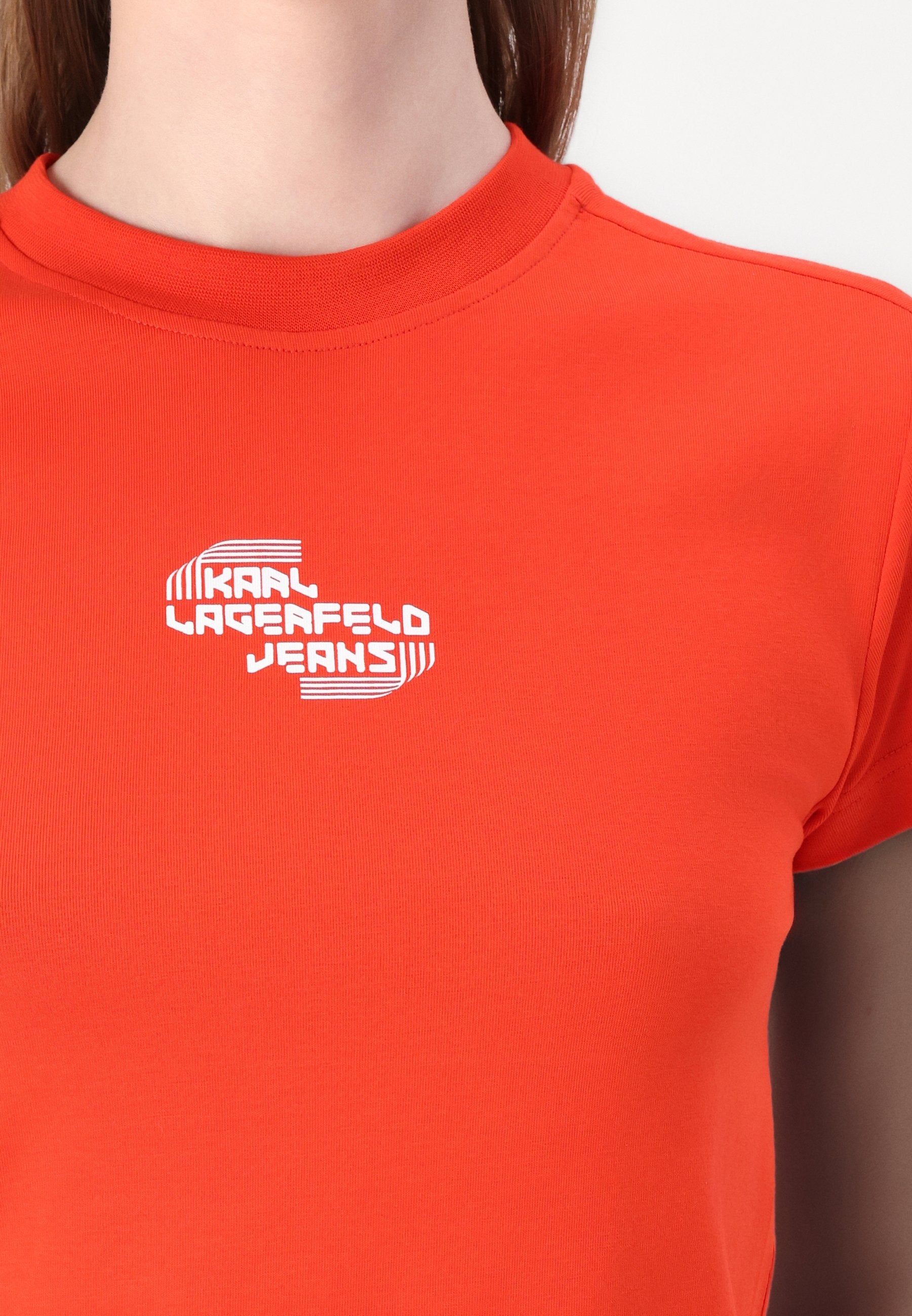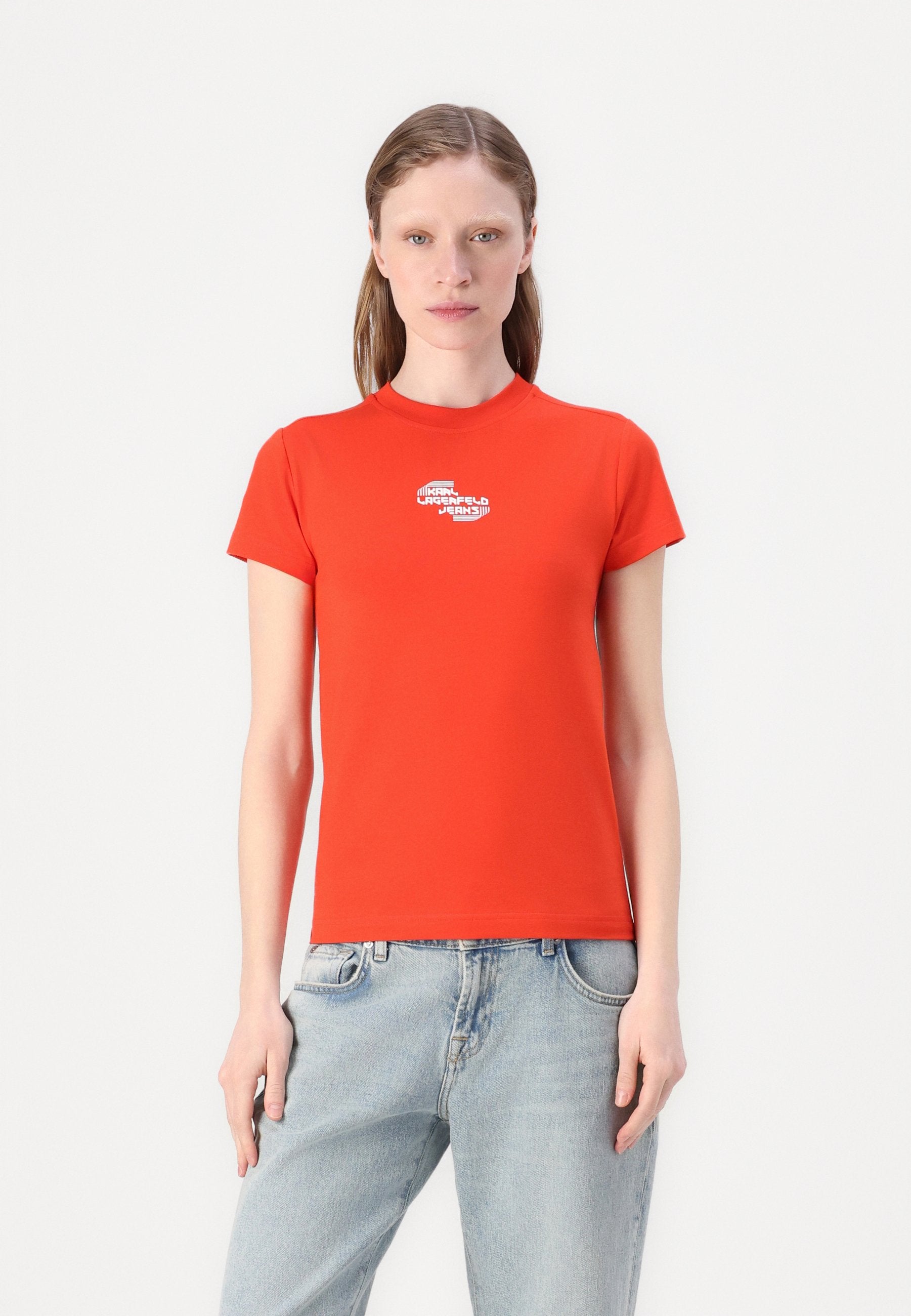 KARL LAGERFELD T-Shirt da donna girocollo maniche corte corallo con logo frontale