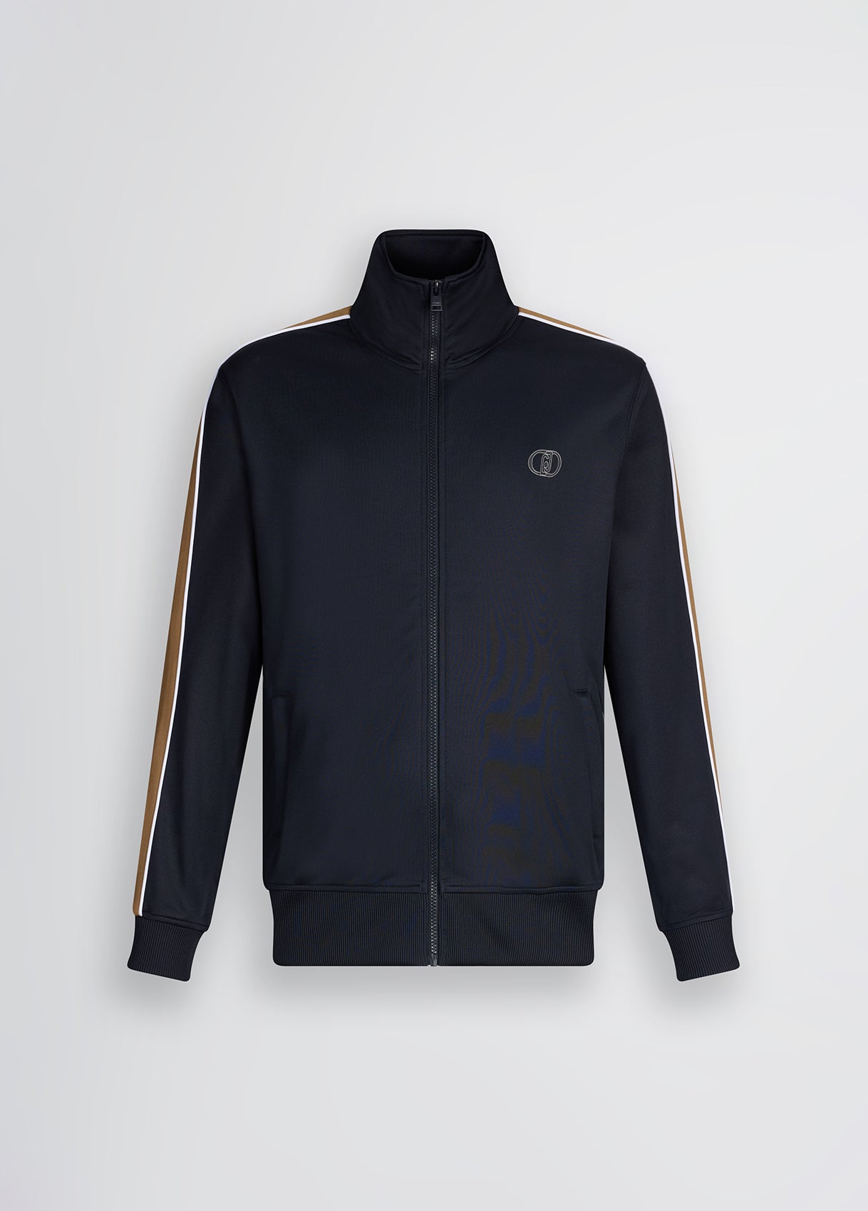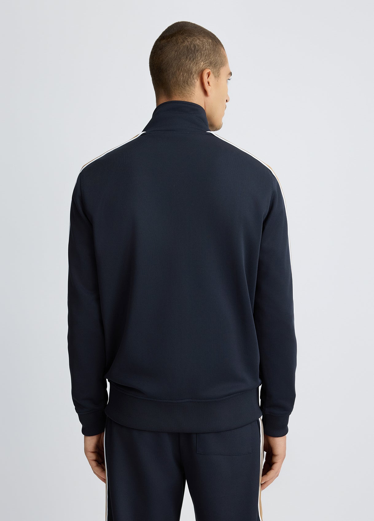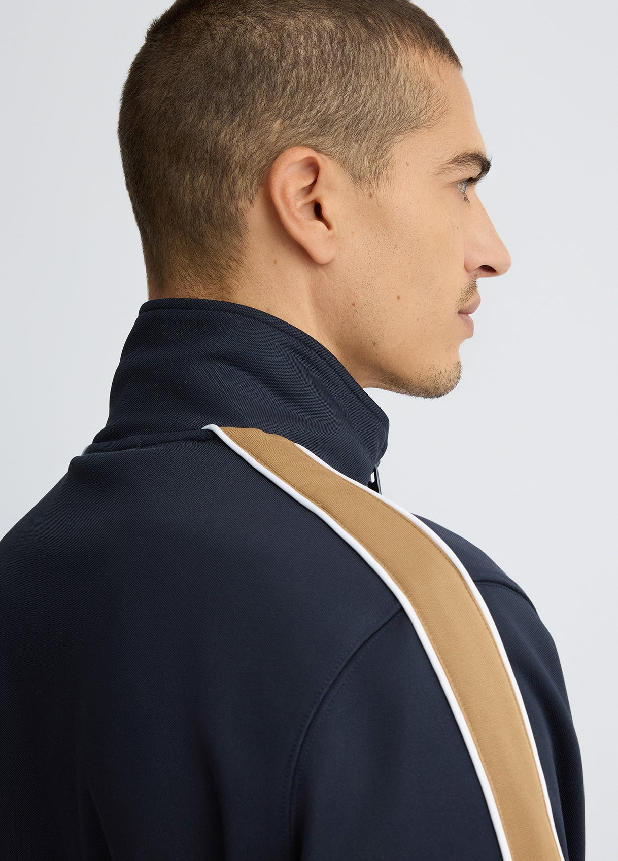 LIU JO Felpa da uomo in acetato blu con banda laterale sulle maniche in contrasto beige QA5133