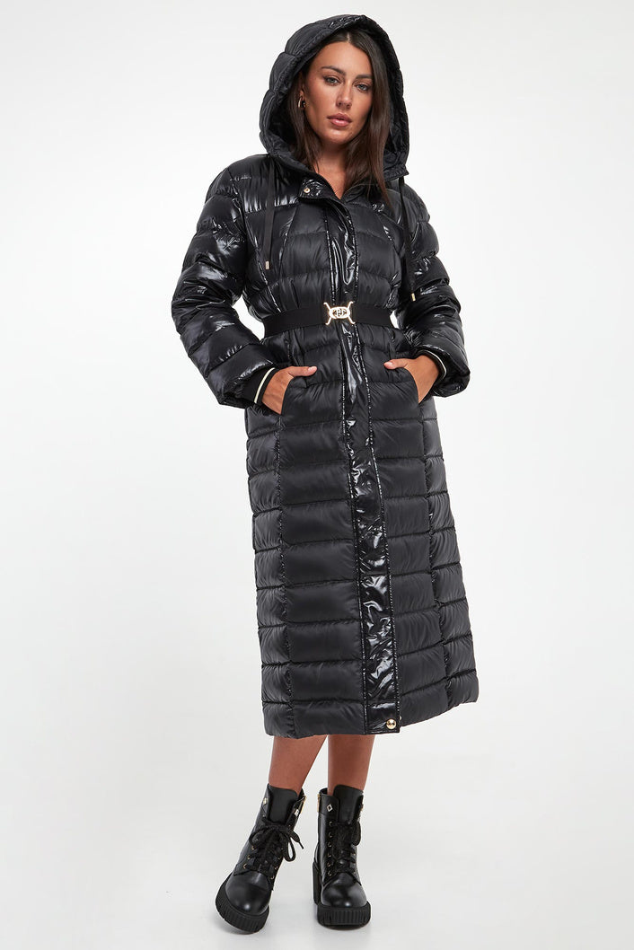 LIU JO Giubbotto lungo bitessuto con cinta removibile nero in vera piuma