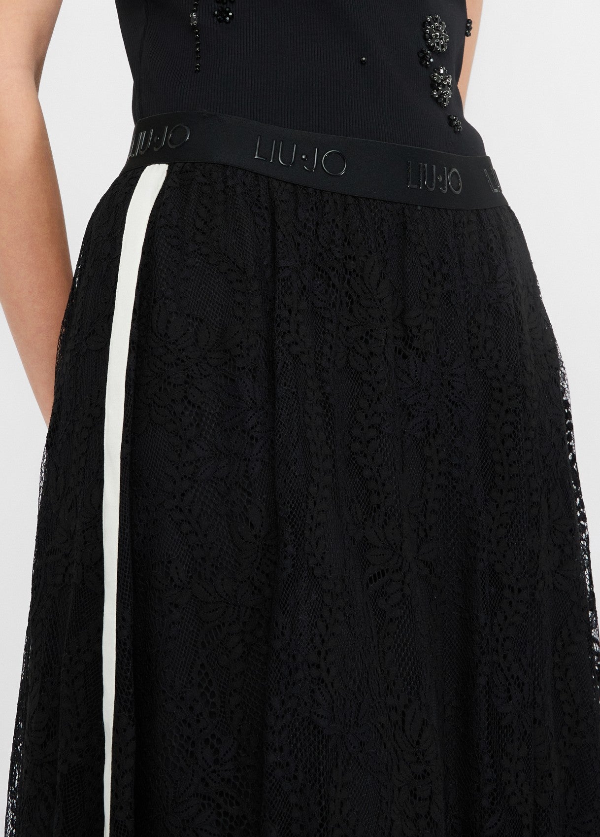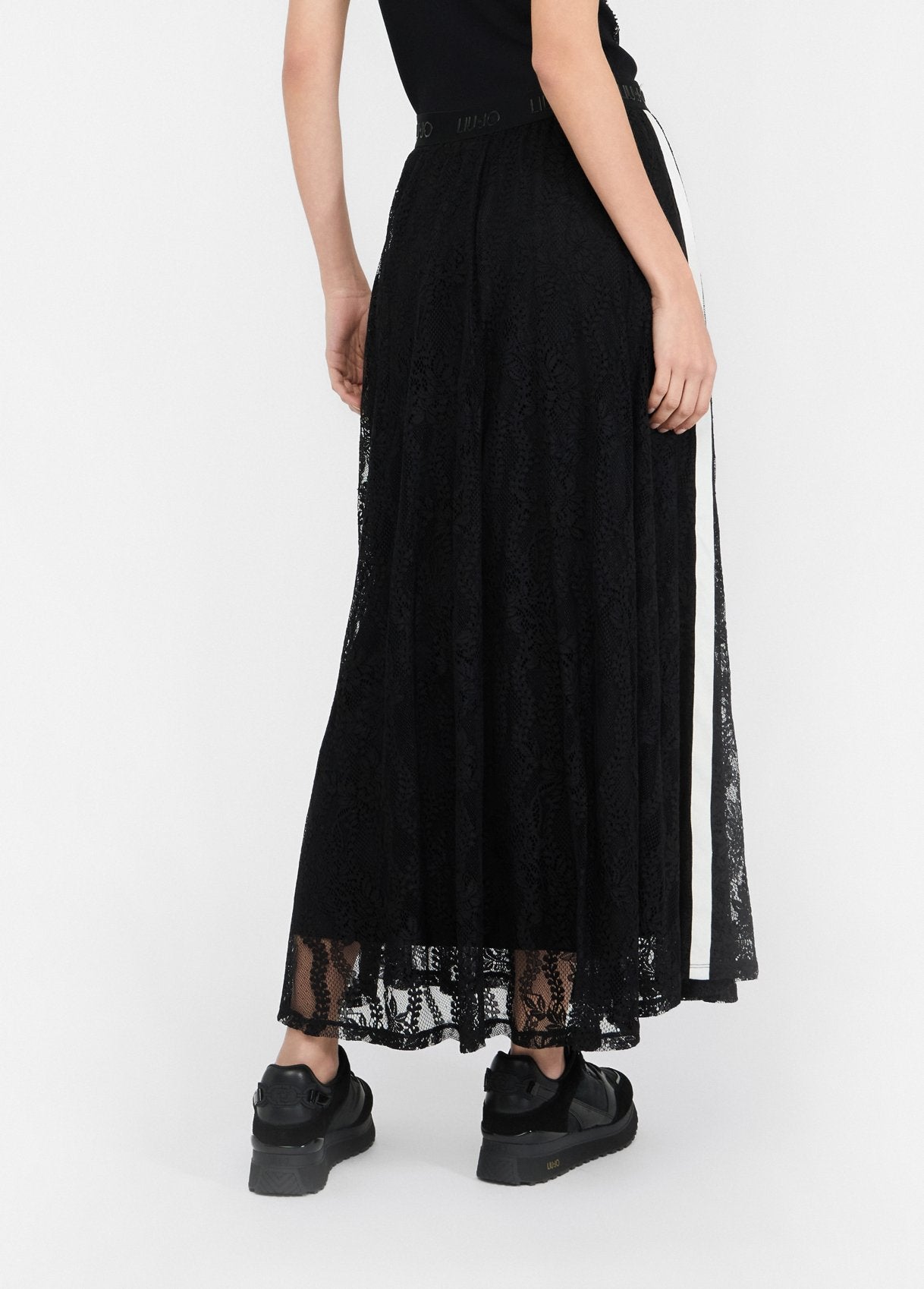 LIU JO Gonna in pizzo nera con molla logata in vita e bande laterali in contrasto TF5260