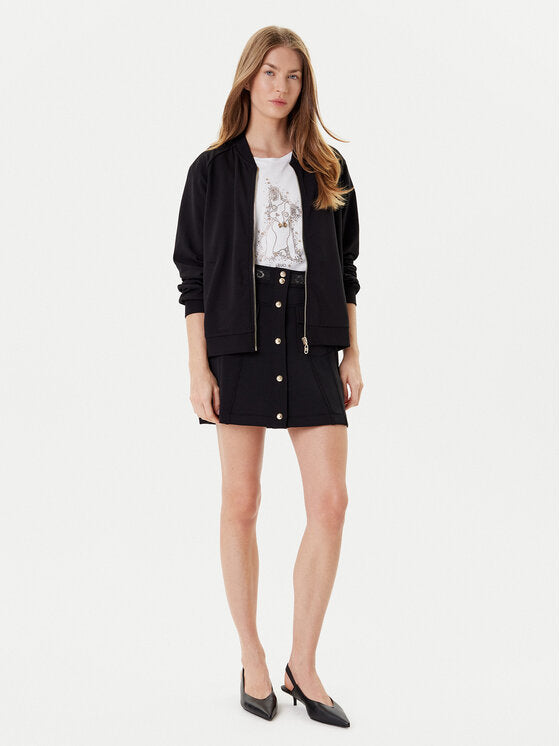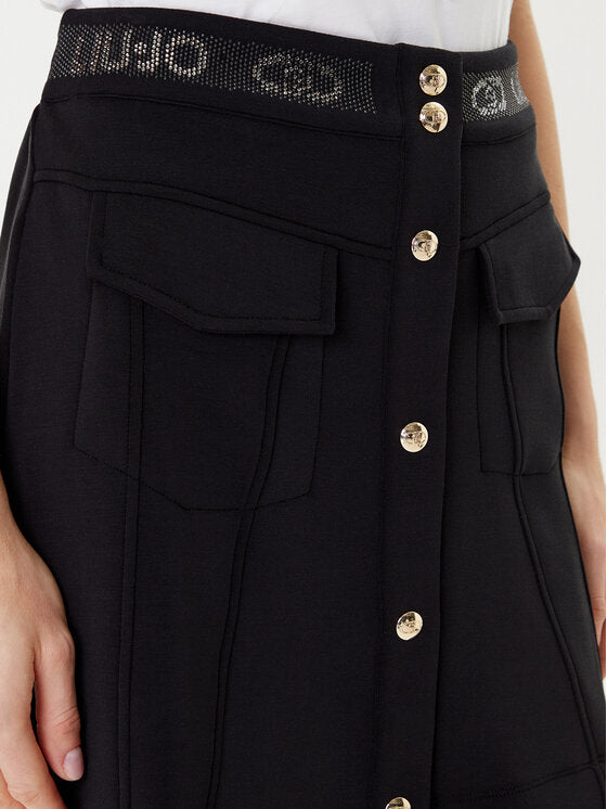 LIU JO Gonna nera in neoprene con bottoni frontali in contrasto e molla logata