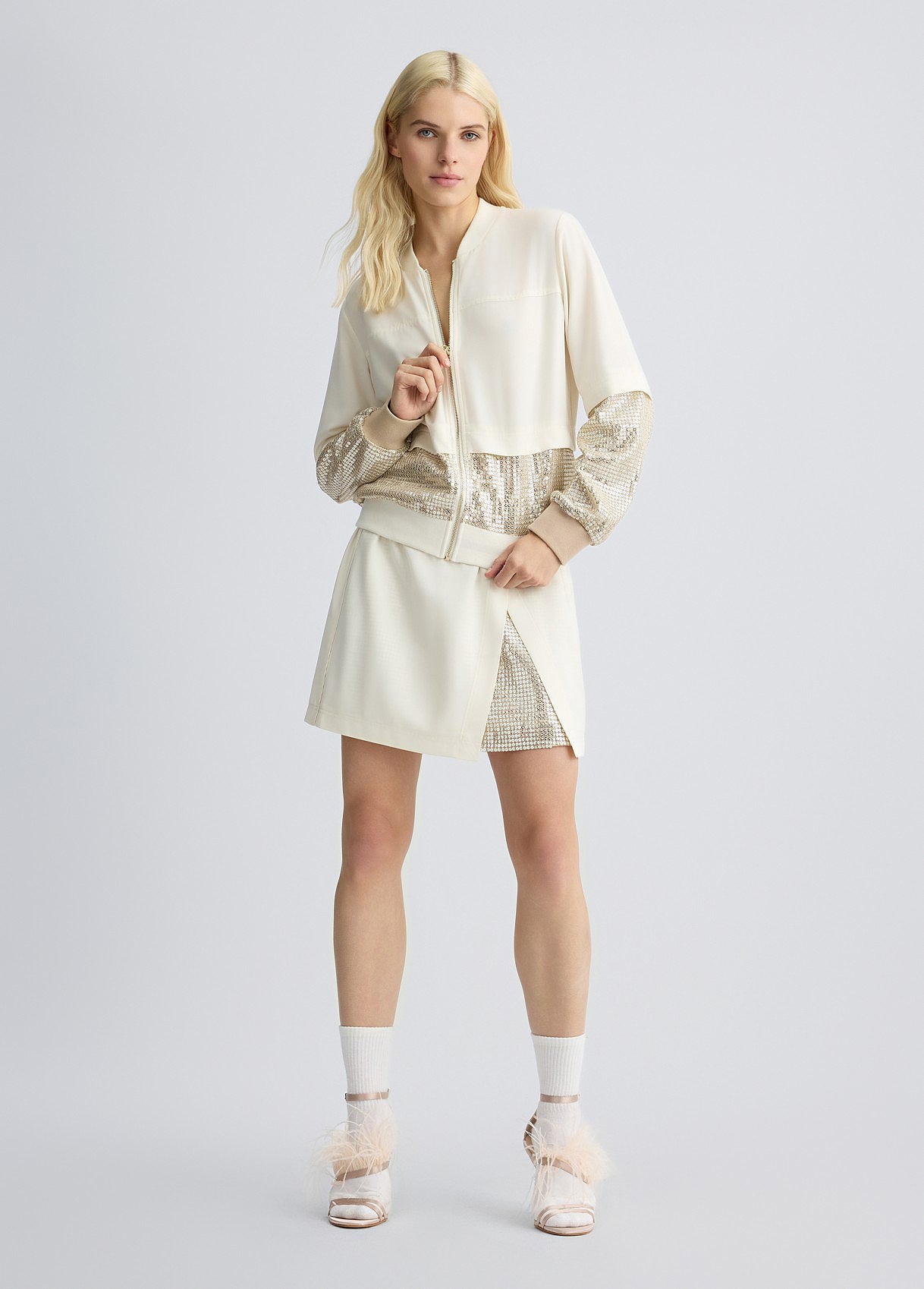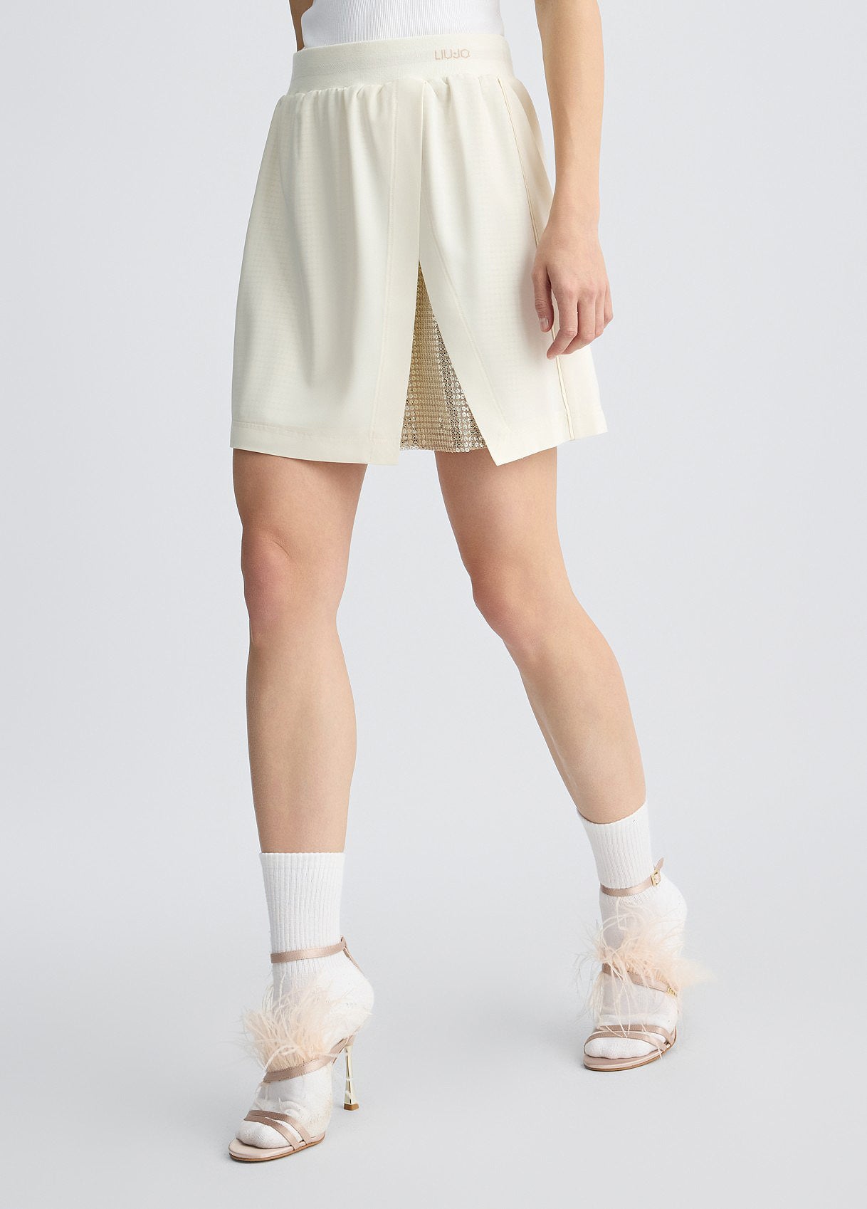 LIU JO Minigonna panna con paillettes colore oro in jersey stretch