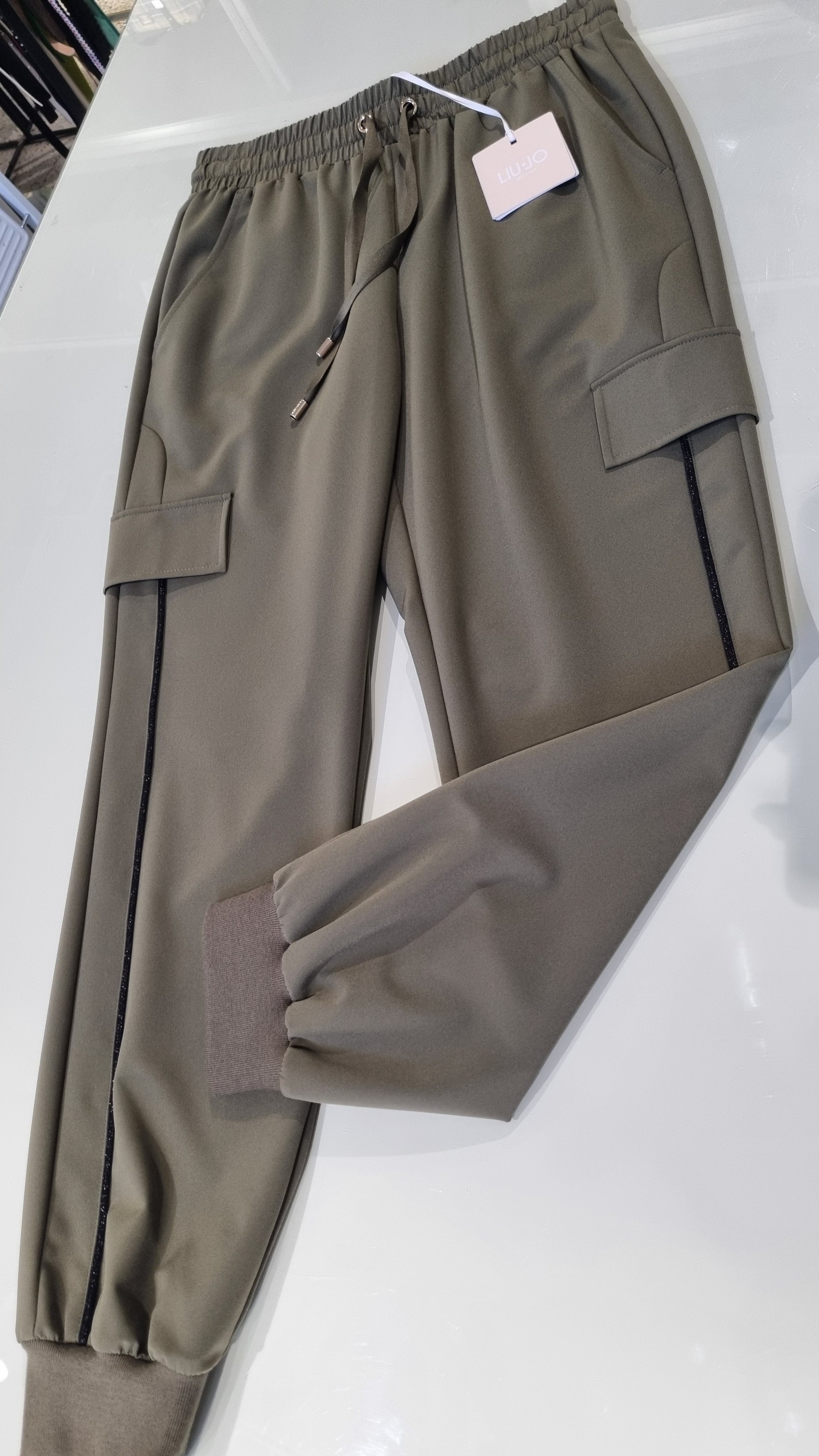 LIU-JO Pantaloni cargo, colore verde militare, molla con coulisse sulla cintura, molla sul fondo, gamba slim.
