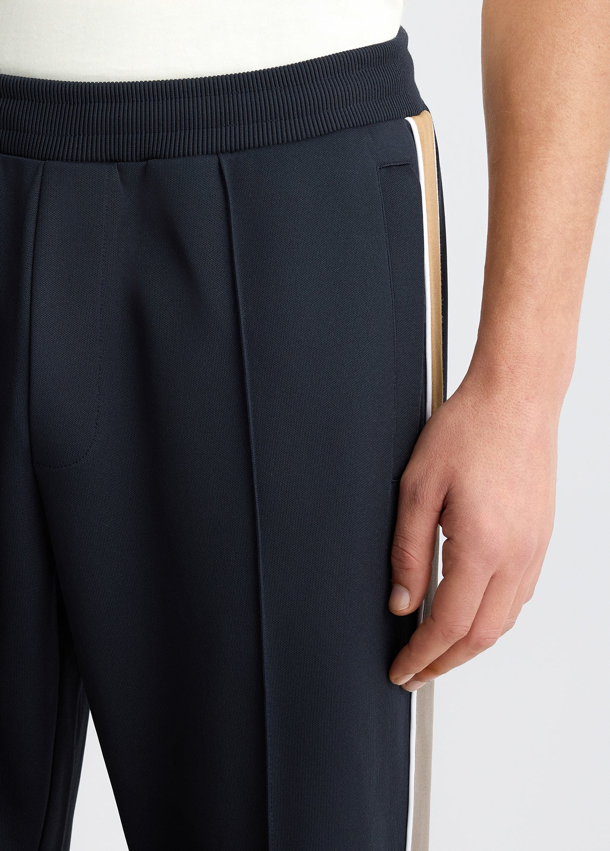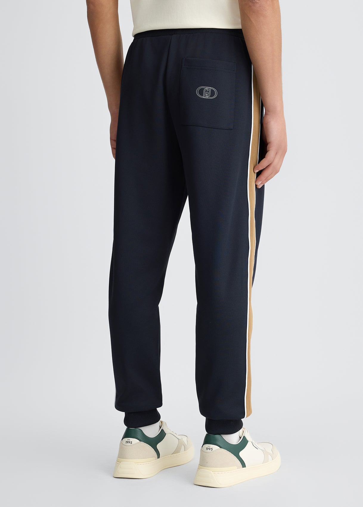 LIU JO Pantaloni da uomo in acetato blu con bande laterali in contrasto beige QA5134