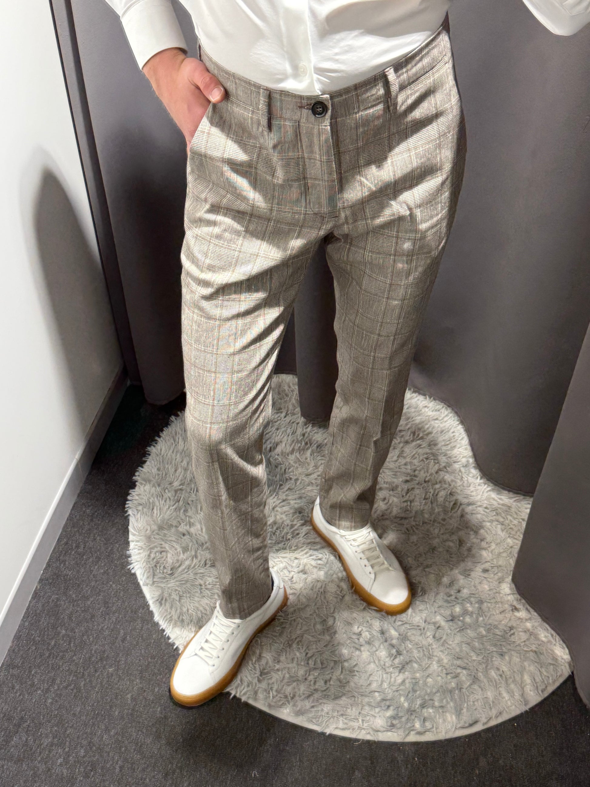 Pantaloni LIU JO dalla linea sofisticata e moderna. Il tessuto a quadri crea un effetto visivo dinamico, perfetto per chi ama uno stile ricercato. La gamba slim aderisce elegantemente, regalando una silhouette affusolata e contemporanea. La tasca in piedi aggiunge praticità senza compromessi estetici. Ideali per occasioni casual-chic, si abbinano facilmente con blazer, magliette basic o camicie. Un capo versatile che eleva qualsiasi outfit con un tocco di personalità.