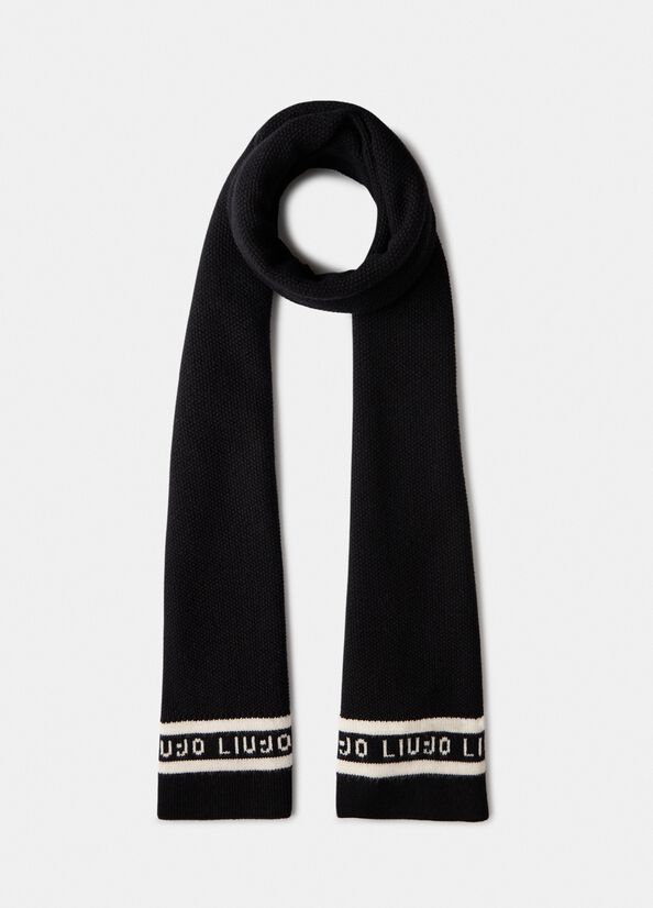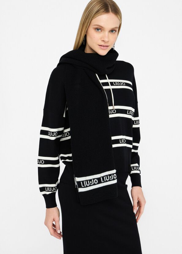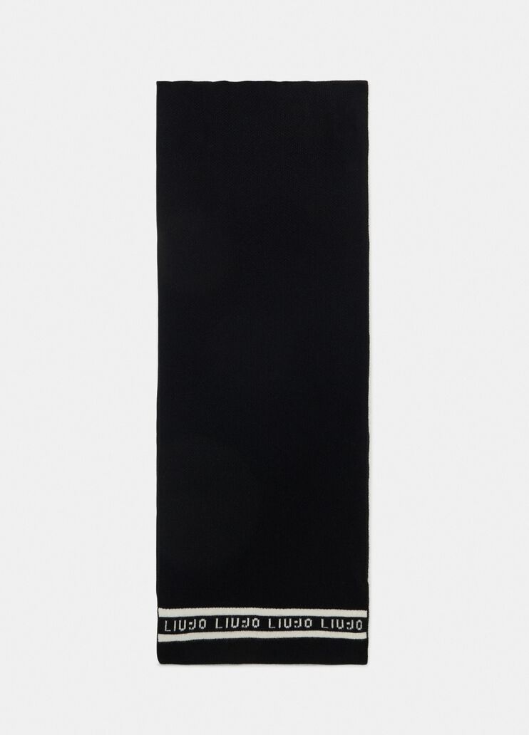 LIU JO Sciarpa in maglia con logo in contrasto e perle