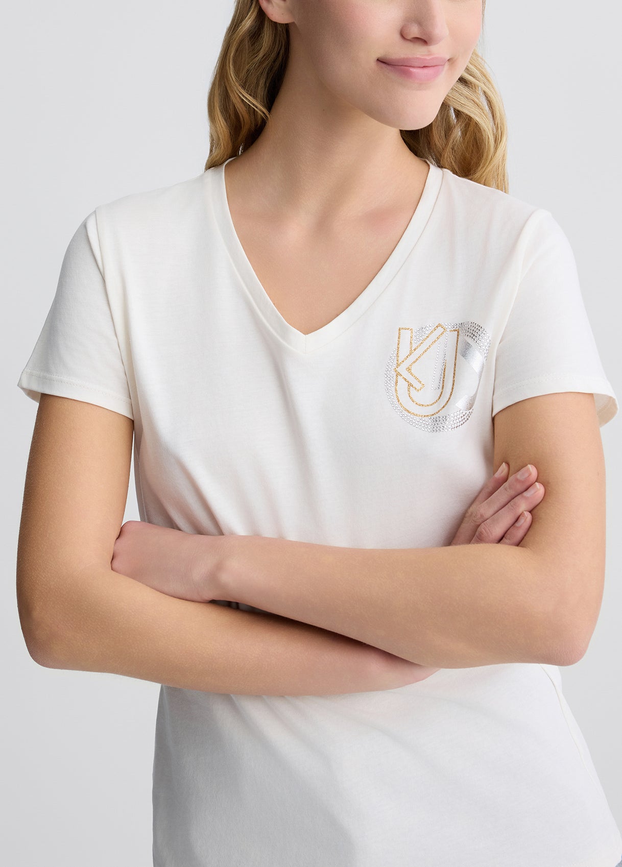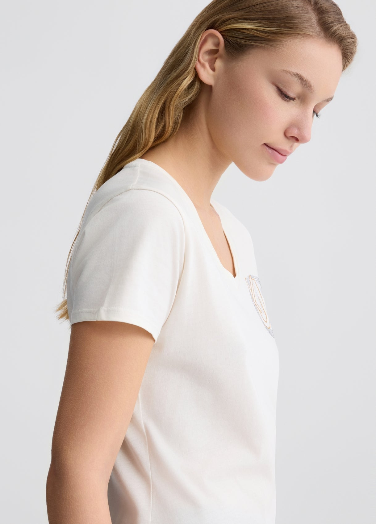 LIU JO T-Shirt donna scollo V maniche corte con logo