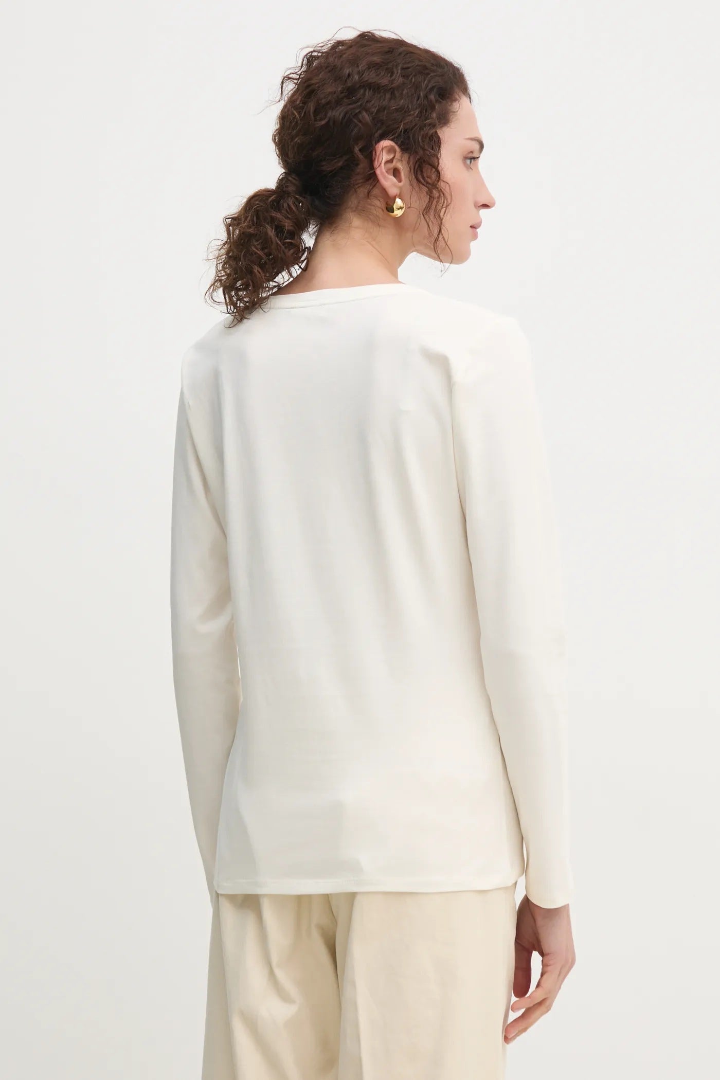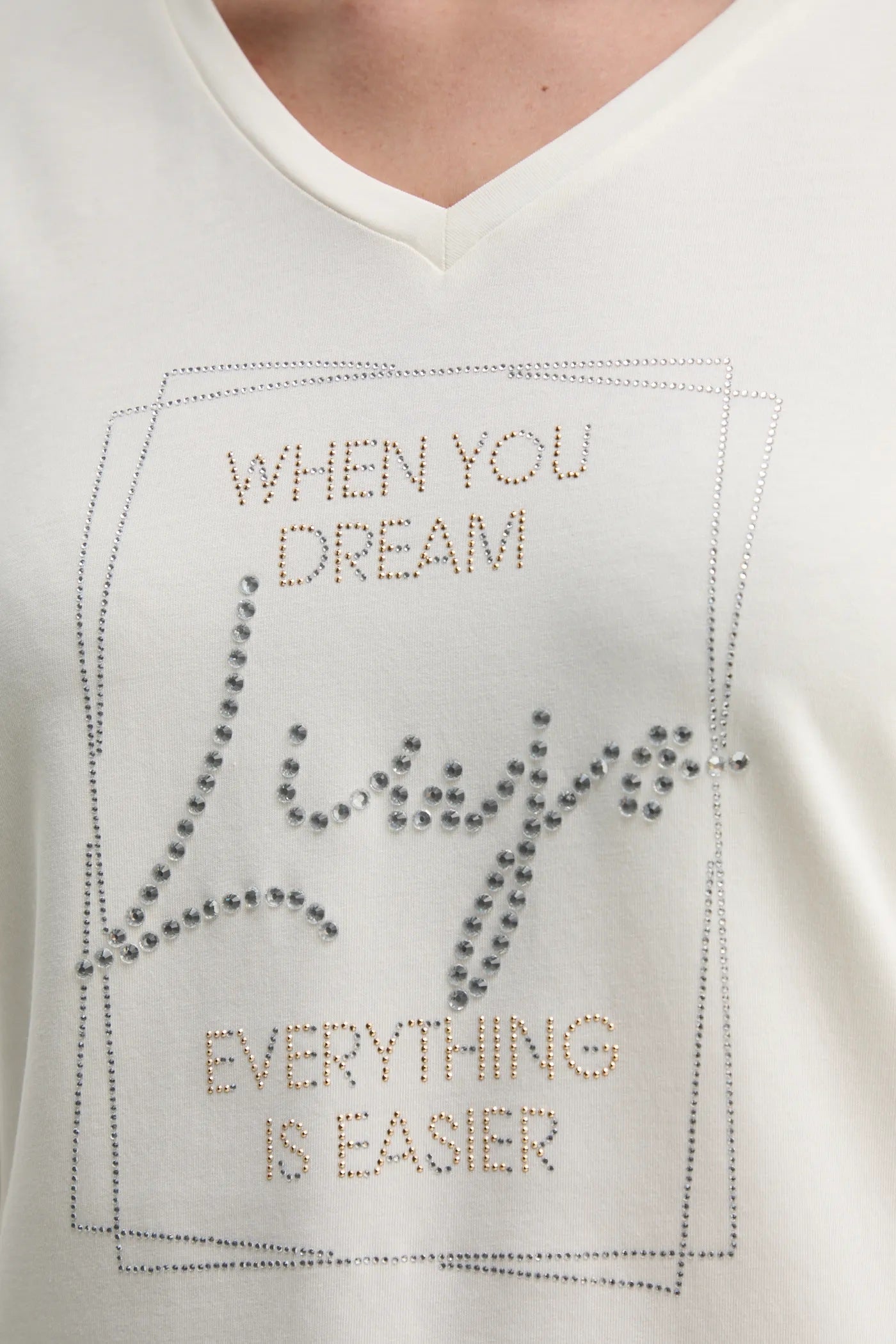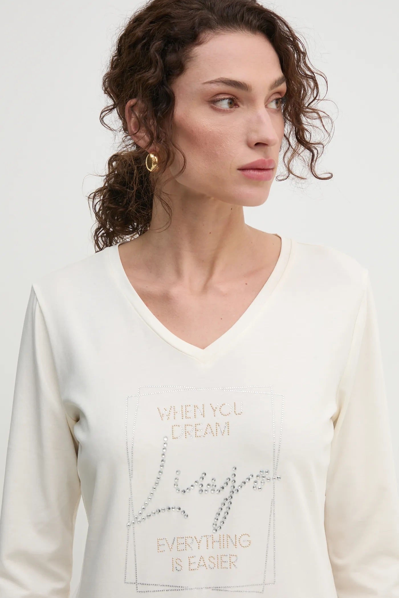 LIU-JO T-shirt manica lunga, applicazione strass frontali, scollo V, vestibilità regolare