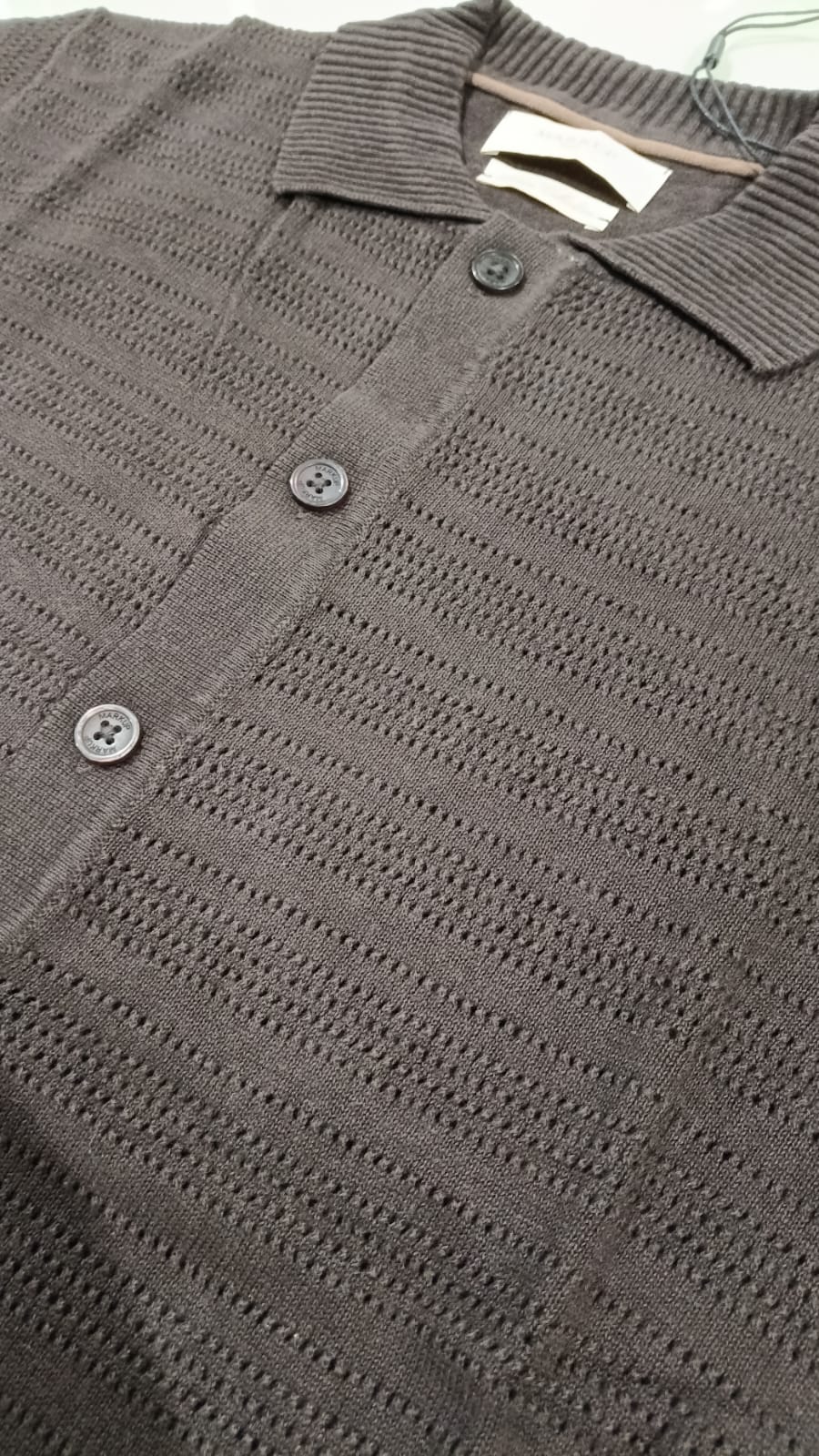MARKUP Maglia di filo intarsiata maniche corte marrone collo a polo bottoni frontali