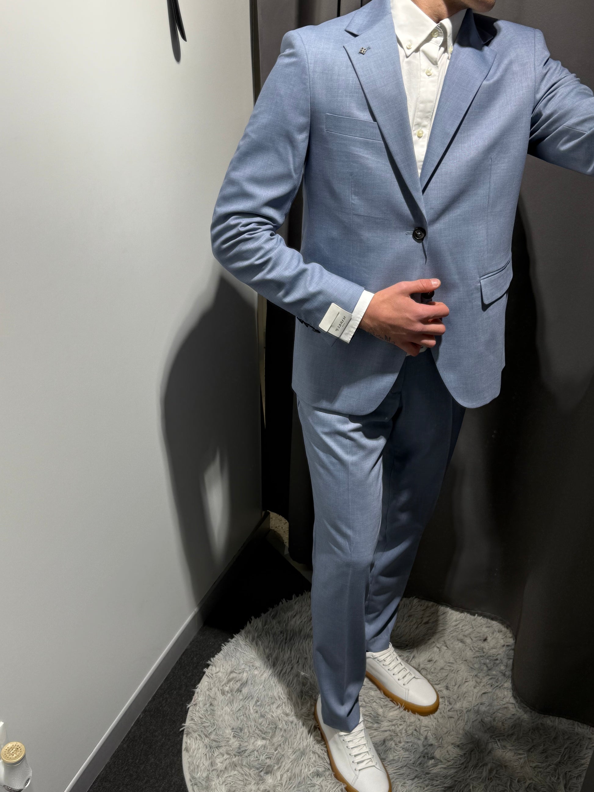Abito da uomo completo con giacca e pantaloni in taglio slim fit. Design moderno e versatile, perfetto per occasioni formali e casual eleganti. Realizzato con attenzione ai dettagli, offre comfort e stile senza compromessi. Rapporto qualità-prezzo eccezionale per chi ricerca un capo affidabile e di tendenza. Indossa con sicurezza e distinguiti con eleganza.