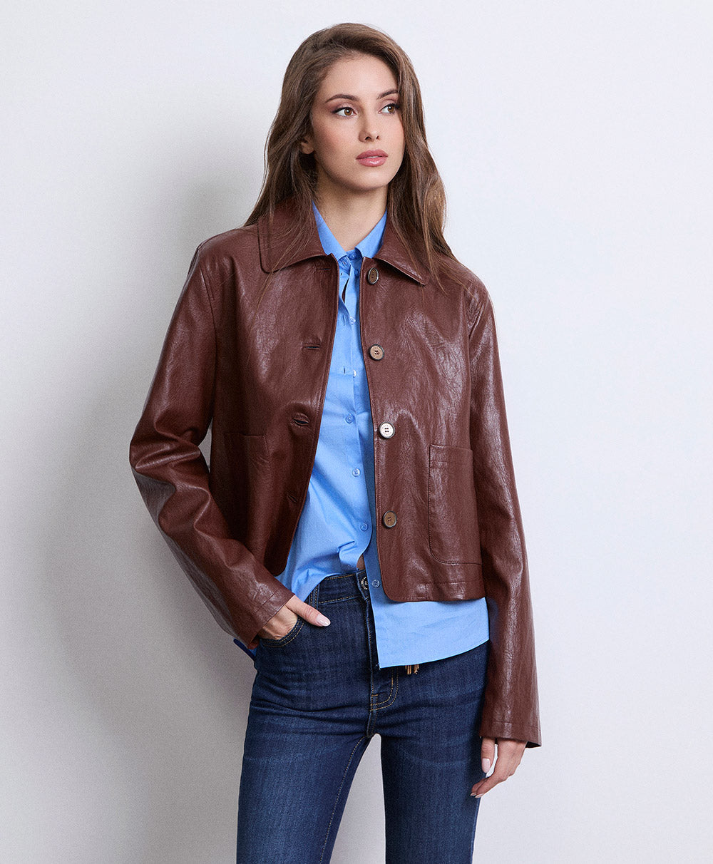 MARKUP Giacca in ecopelle con bottoni e taschine frontali cacao