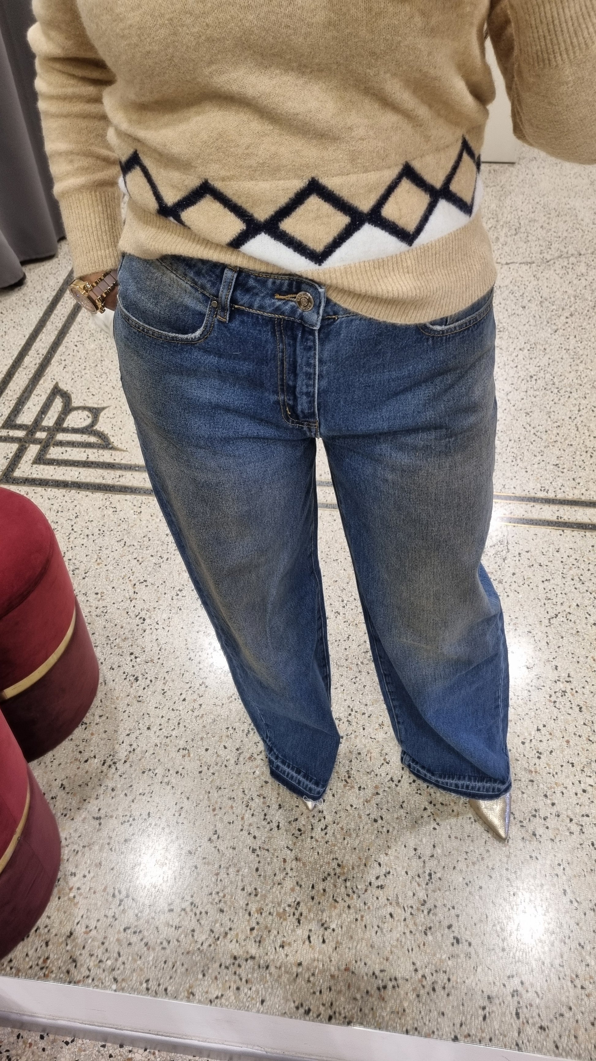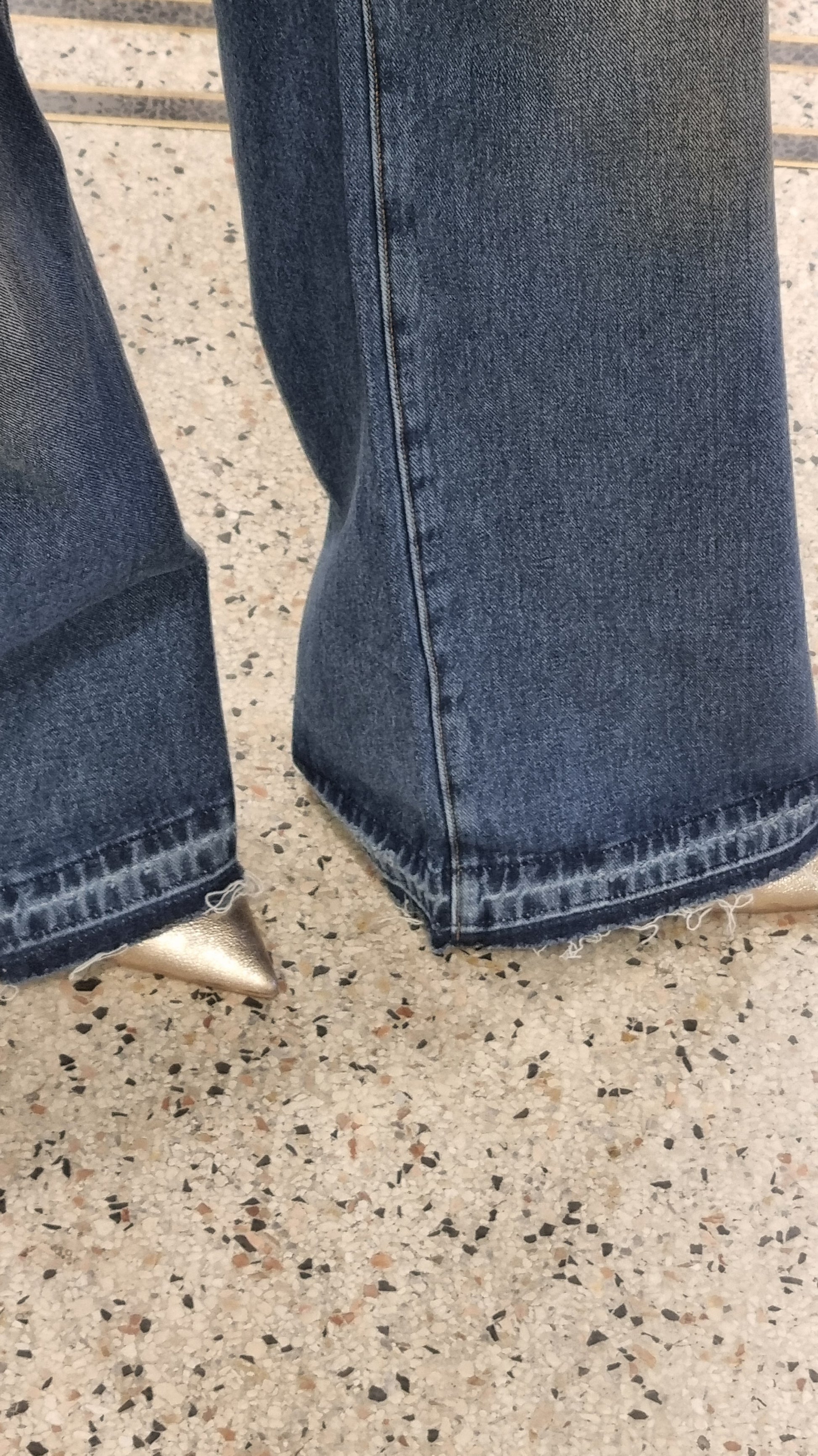 MARKUP Jeans palazzo, lavaggio sabbiato, fondo sfrangiato.
