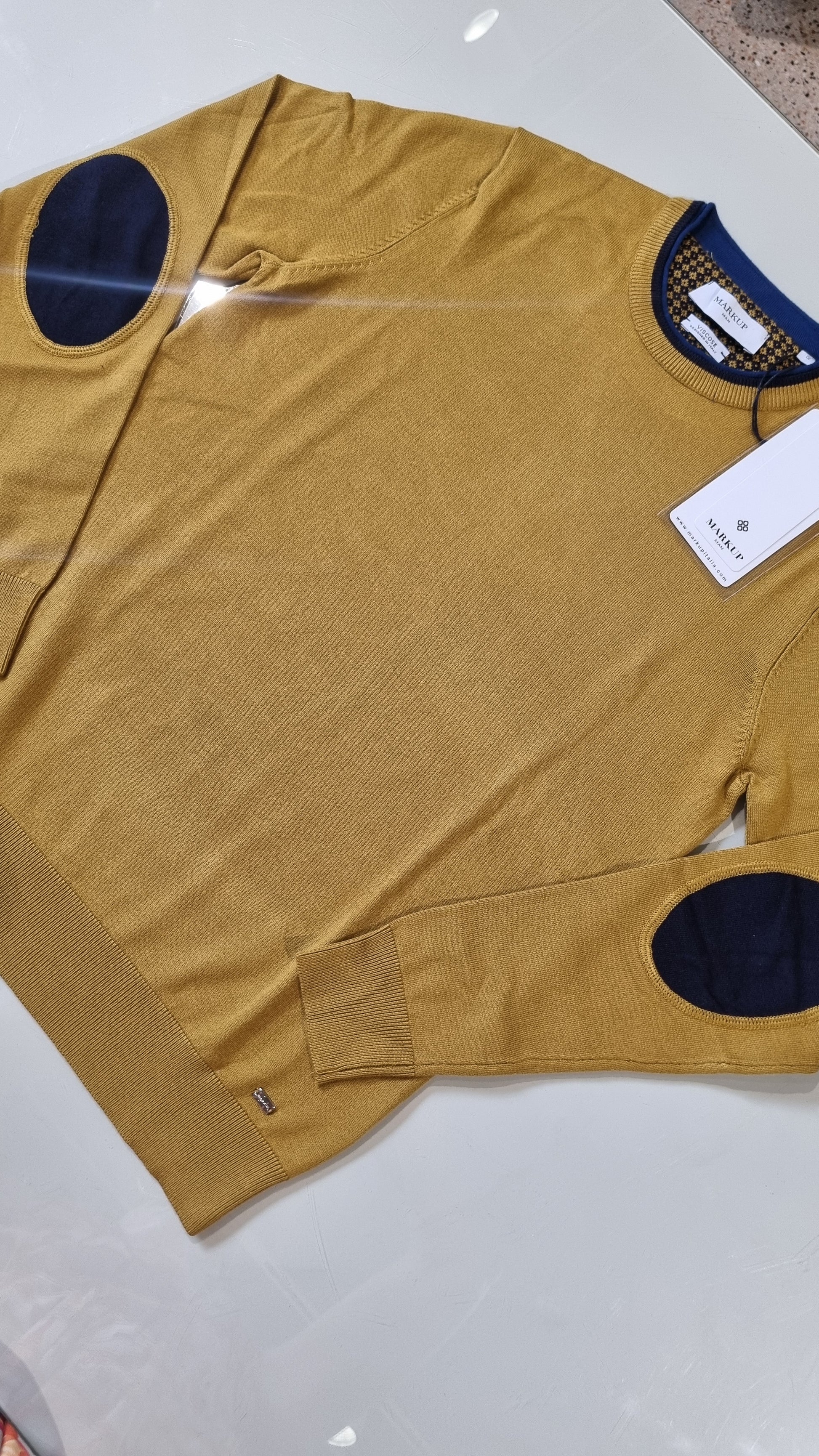 MARKUP Maglia con toppe sui gomiti, collo con doppio tessuto in contrasto di colore.