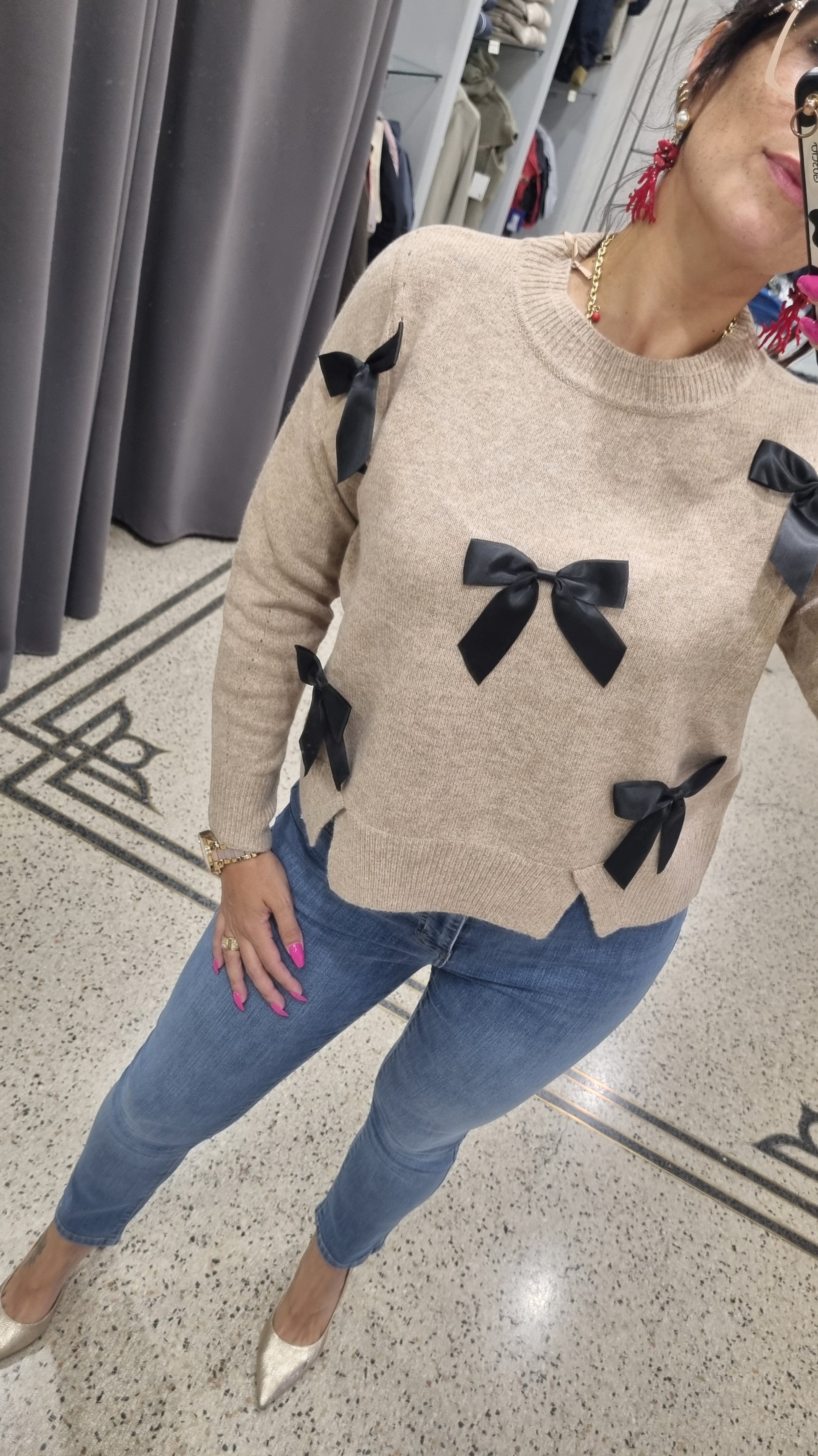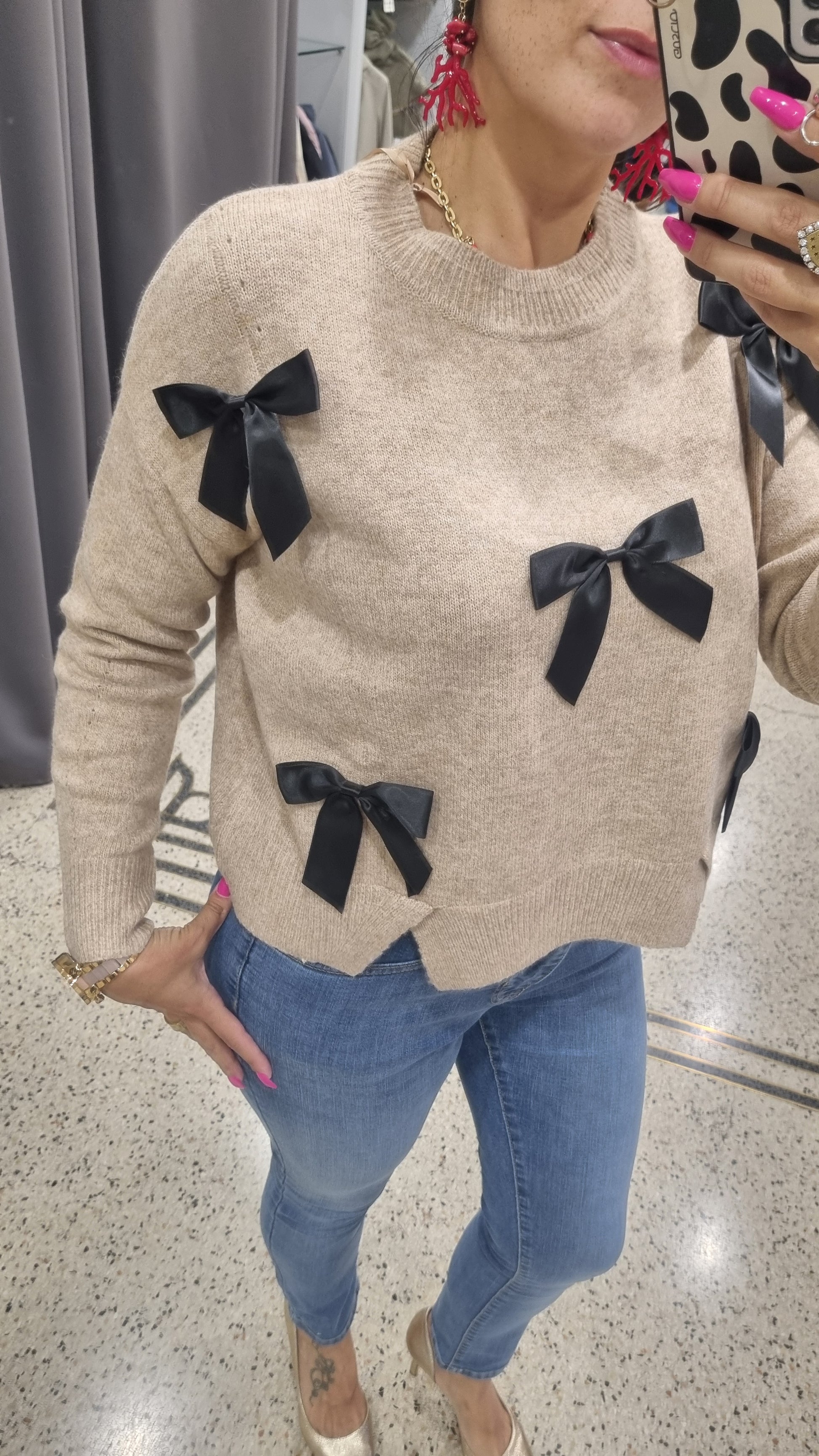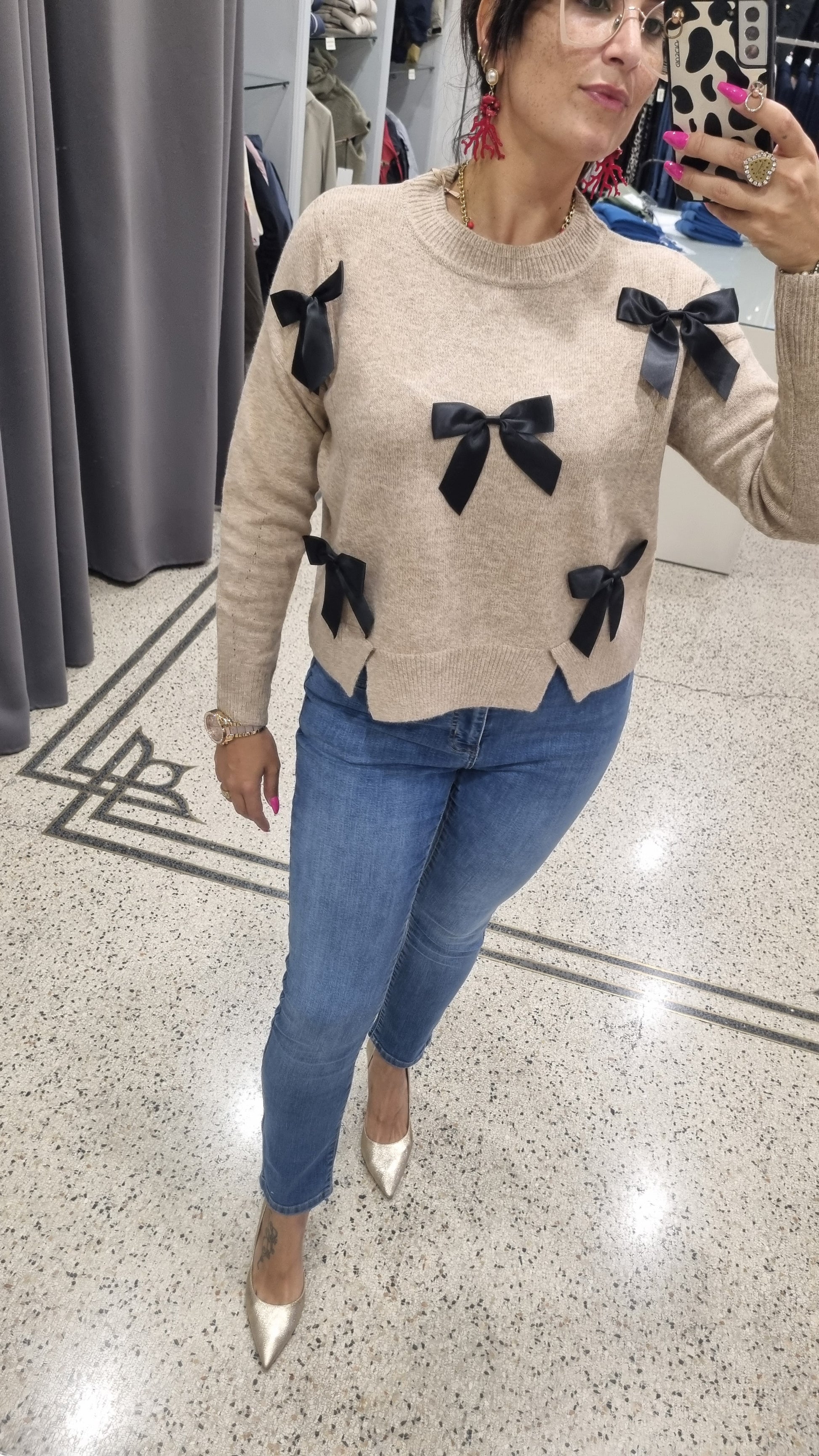 MARKUP Maglia fiocchi, vestibilità a scatoletta, doppio spacchetto sul fondo