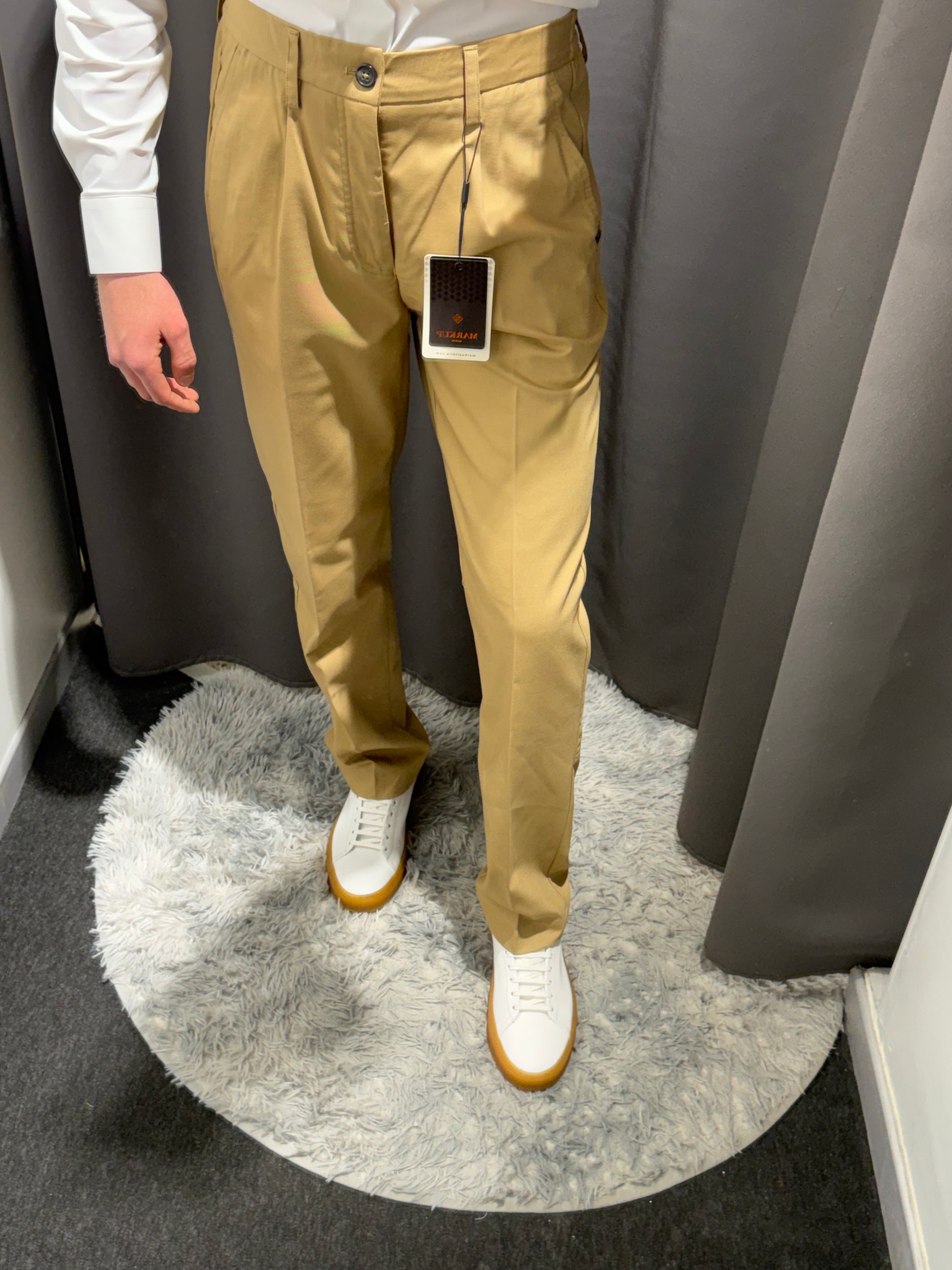 Pantaloni jogger MARKUP dal design contemporaneo e versatile. Caratterizzati da molla e coulisse al punto vita per una vestibilità comoda e regolabile, gamba morbida con pinces che garantisce movimento naturale e fondo stretto per una silhouette moderna. Realizzati in tessuto fluido e leggero, perfetti per uno stile casual raffinato. Disponibili nei colori beige e nero, ideali per ogni occasione.