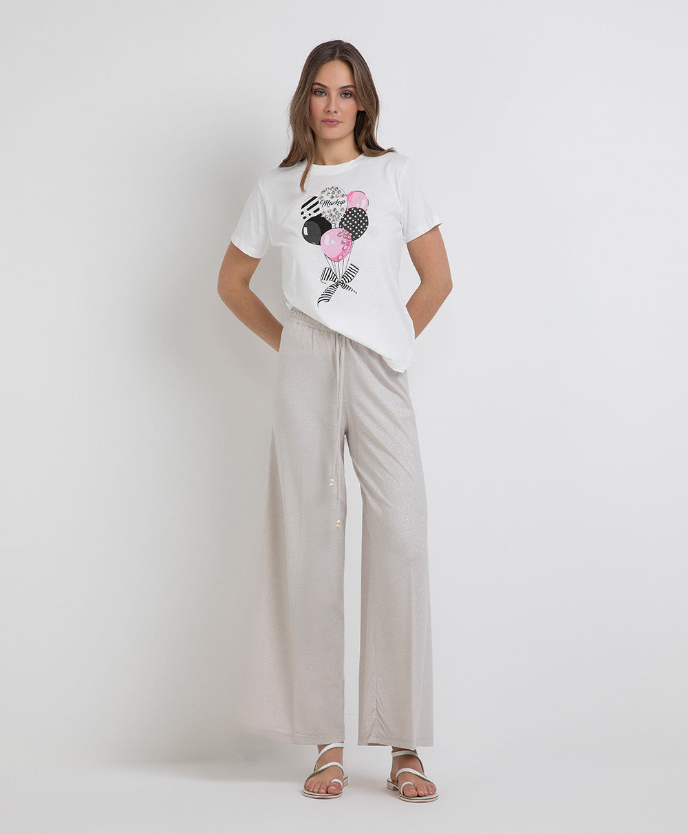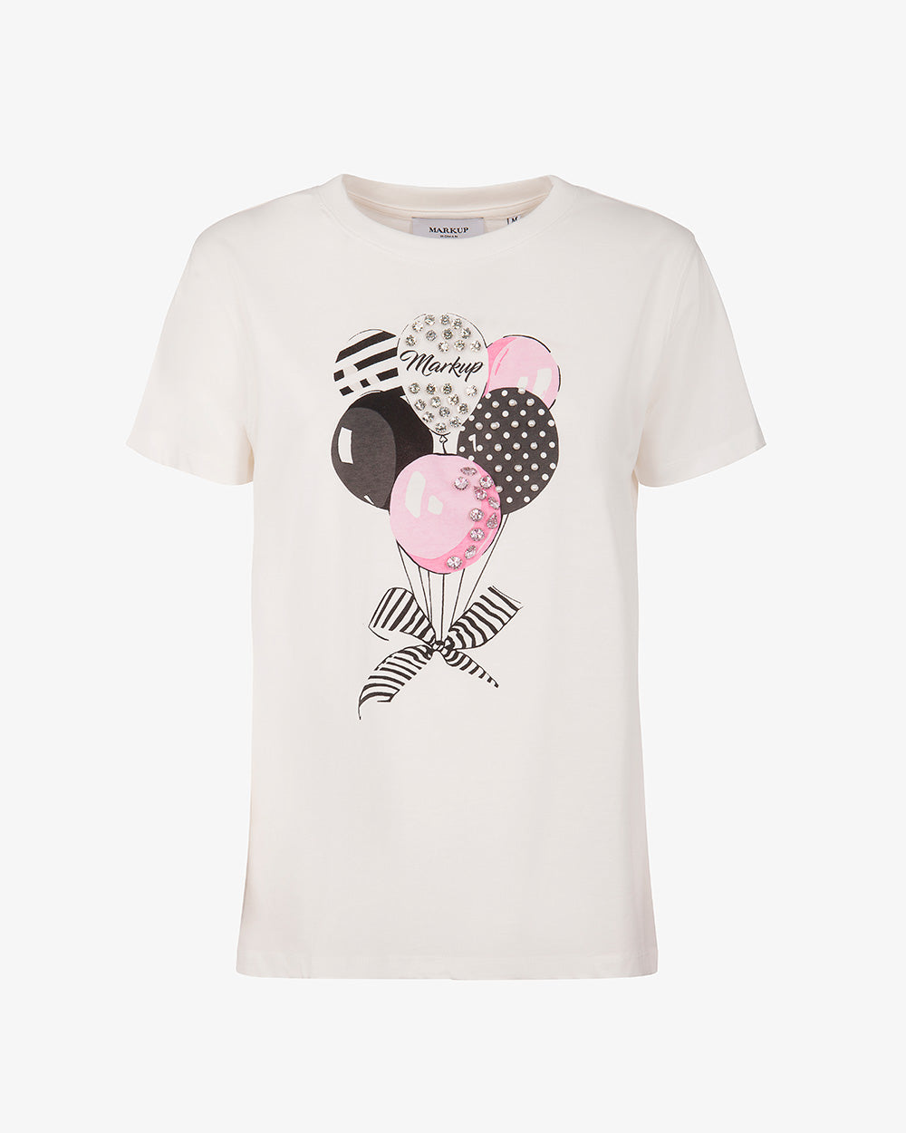 MARKUP T-Shirt girocollo con stampa palloncini e applicazioni strass