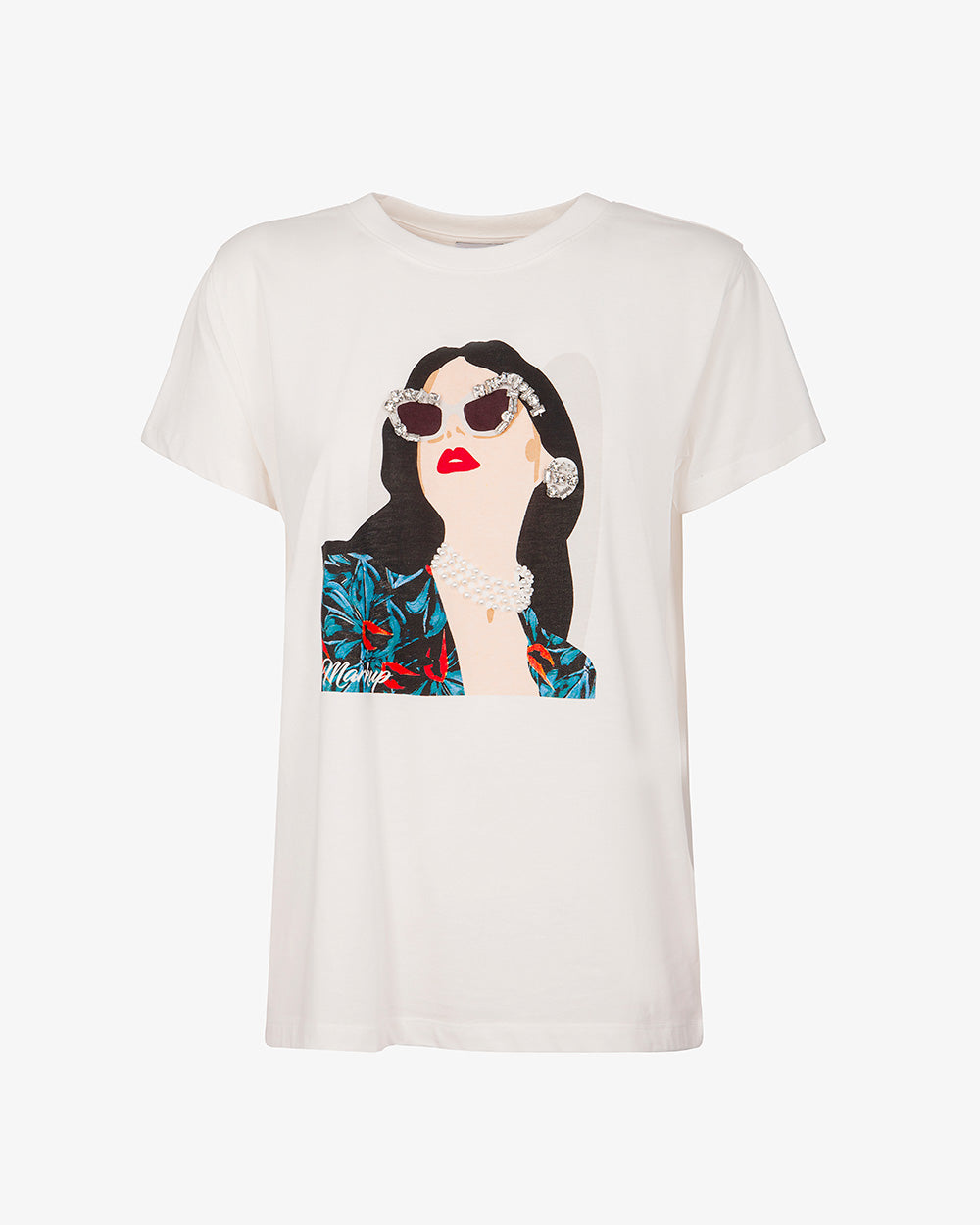 MARKUP T-Shirt maniche corte girocollo con stampa viso donna e applicazione perle