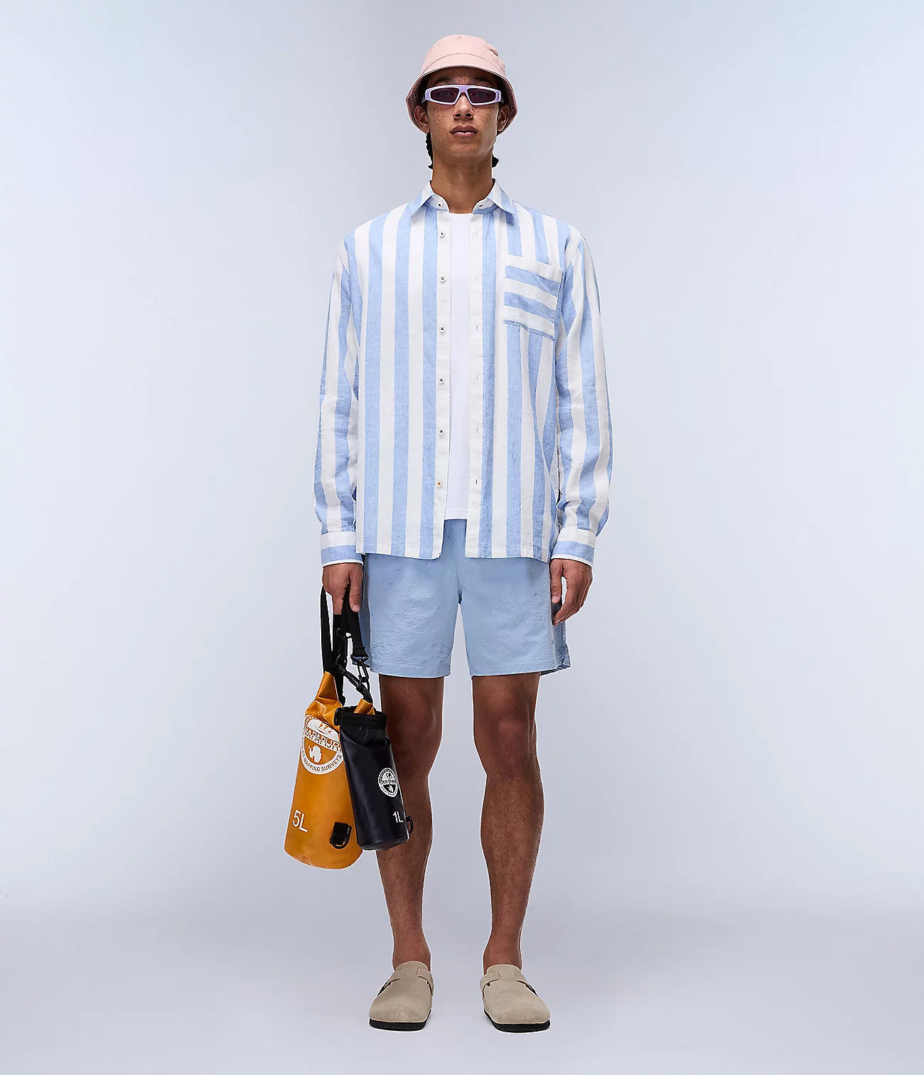 NAPAPIJRI Camicia uomo misto lino maniche lunghe e taschino G-BROLIO celeste e bianco