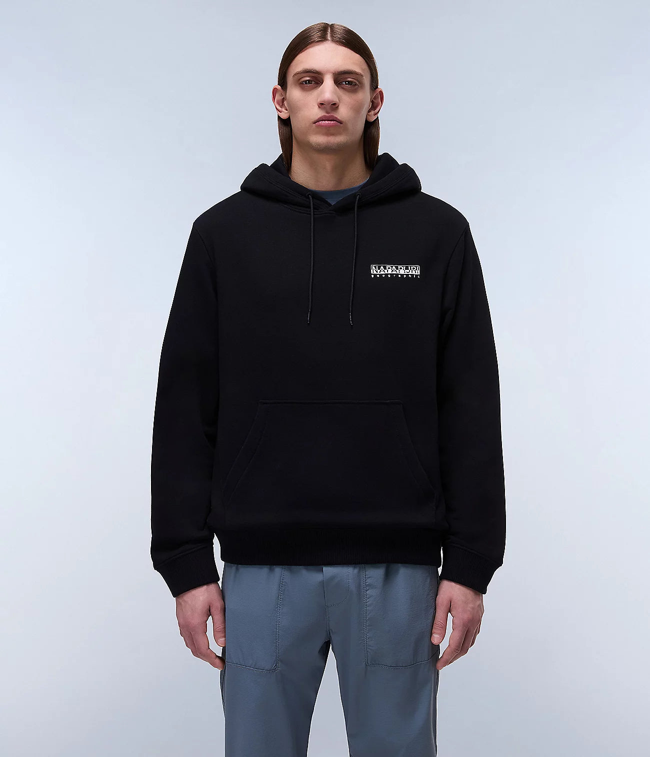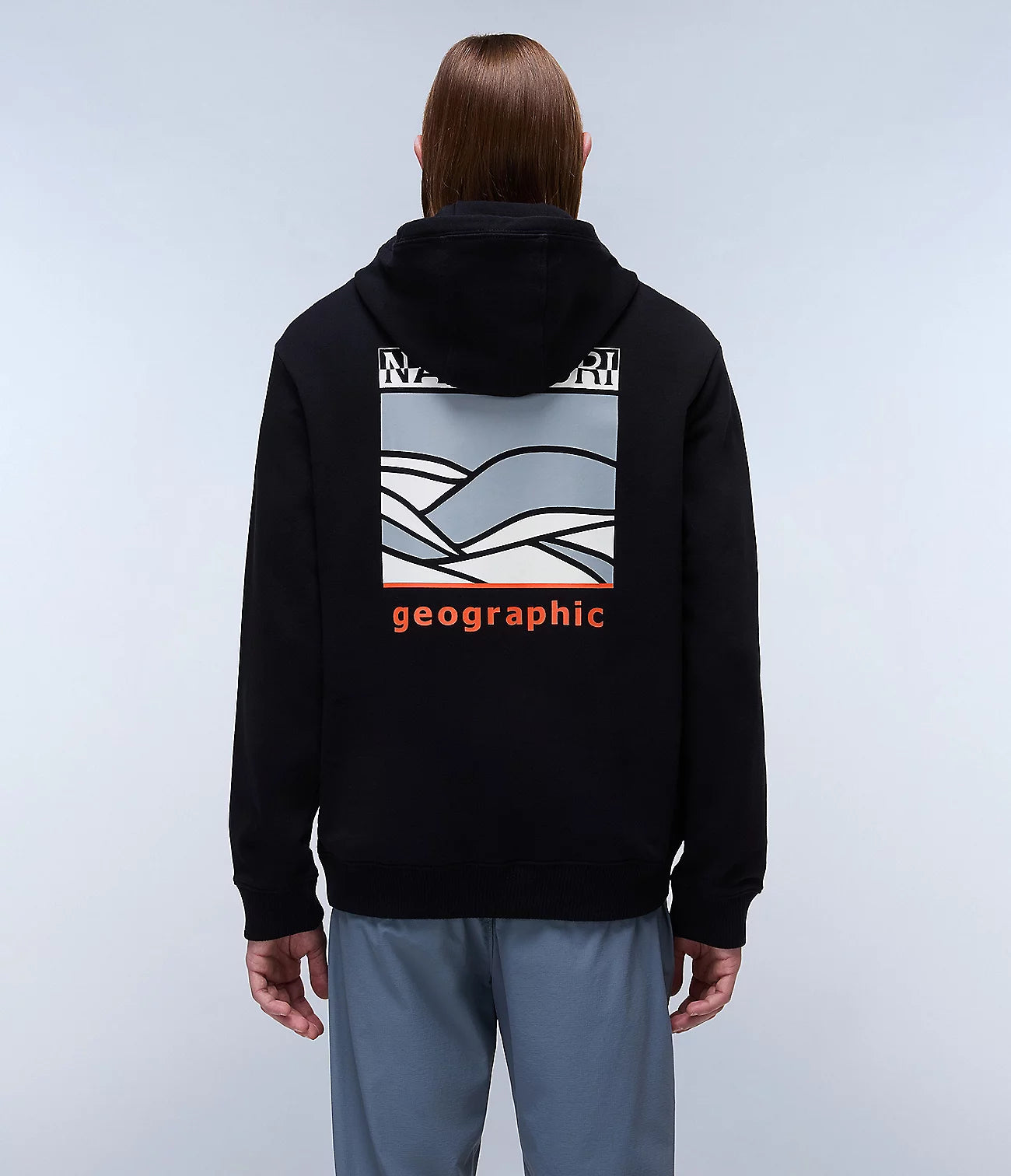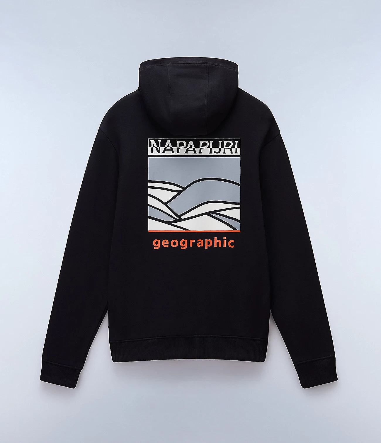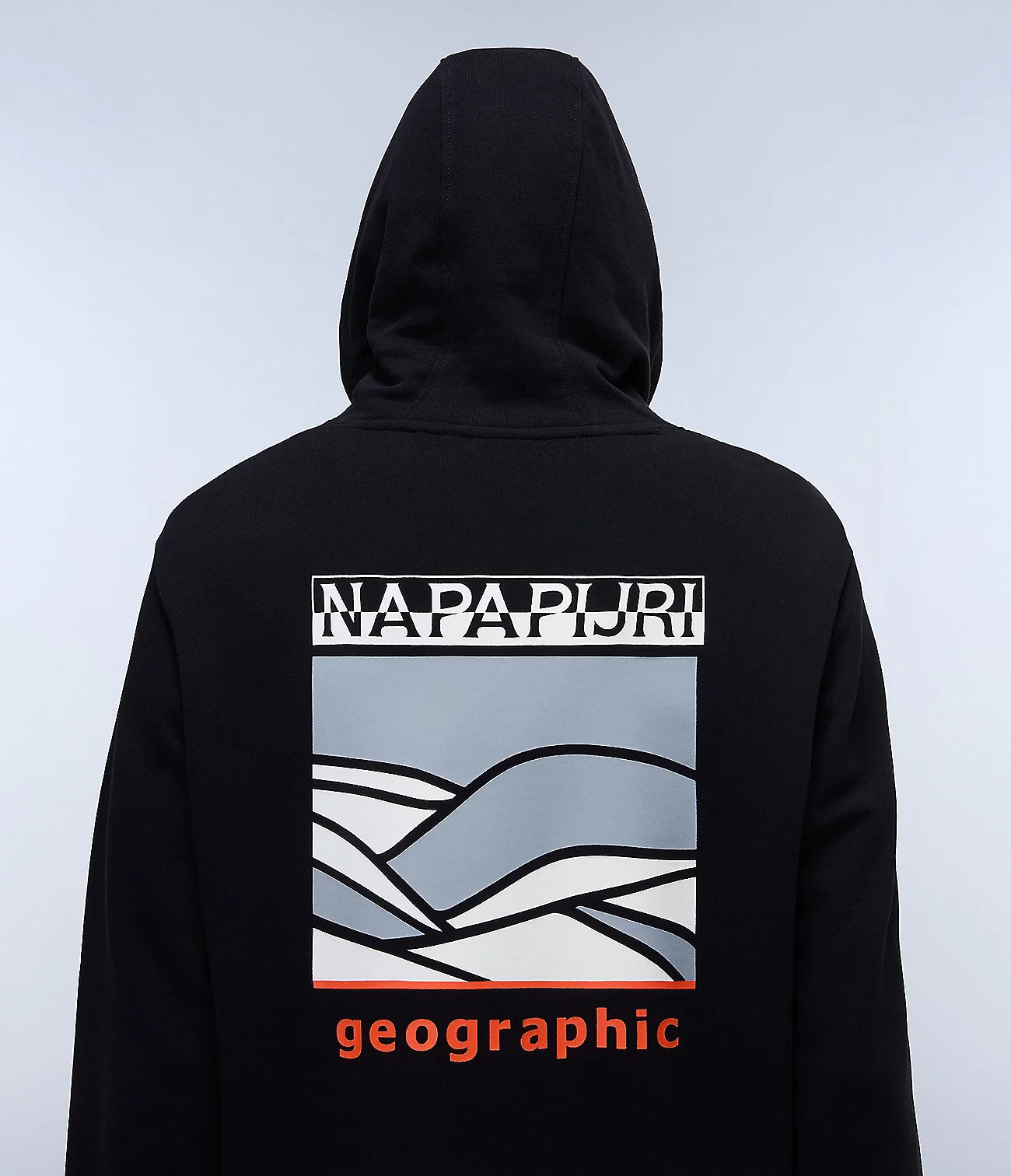 NAPAPIJRI Felpa uomo con cappuccio nera e maxi stampa sulla schiena B-SOVANA H