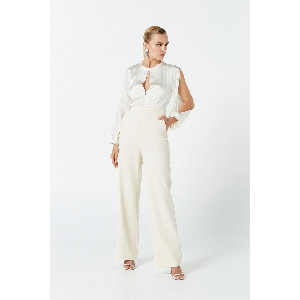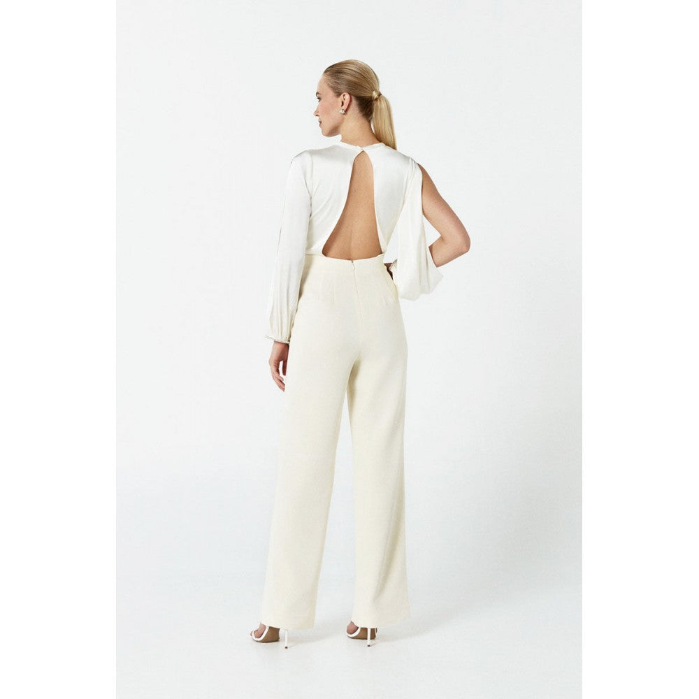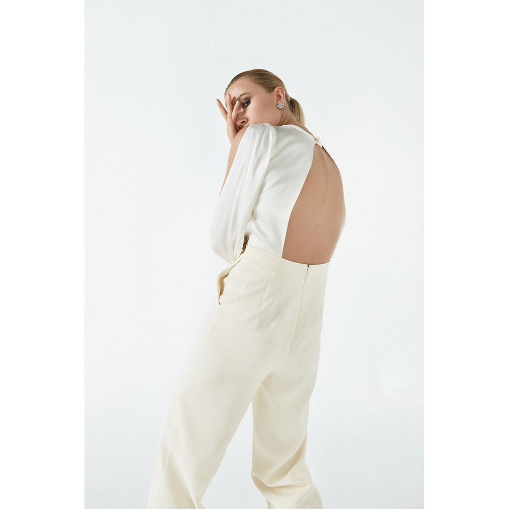 NENETTE Tuta panna elegante con schiena scoperta e maniche lunghe aperte