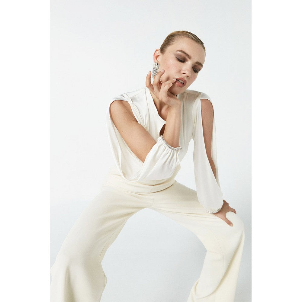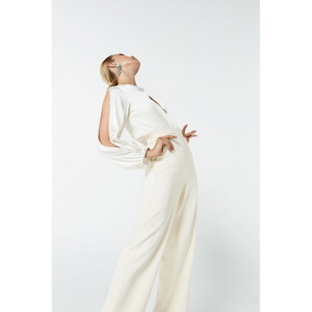 Tuta con parte sopra in raso e pantaloni in crepe.
