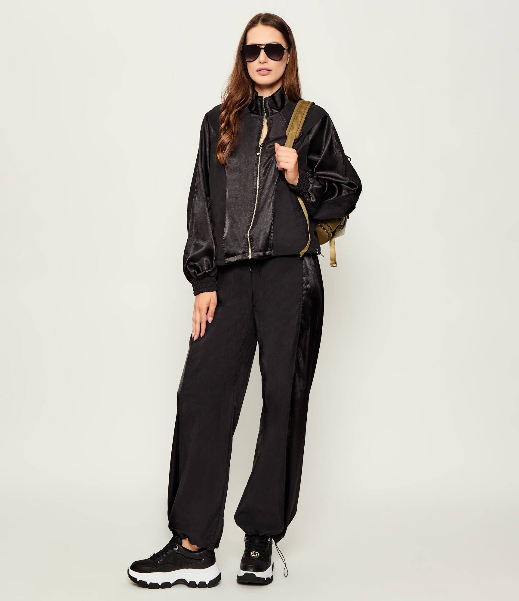 Pantaloni LIU-JO con profili in raso, coulisse su cintura e fondo.