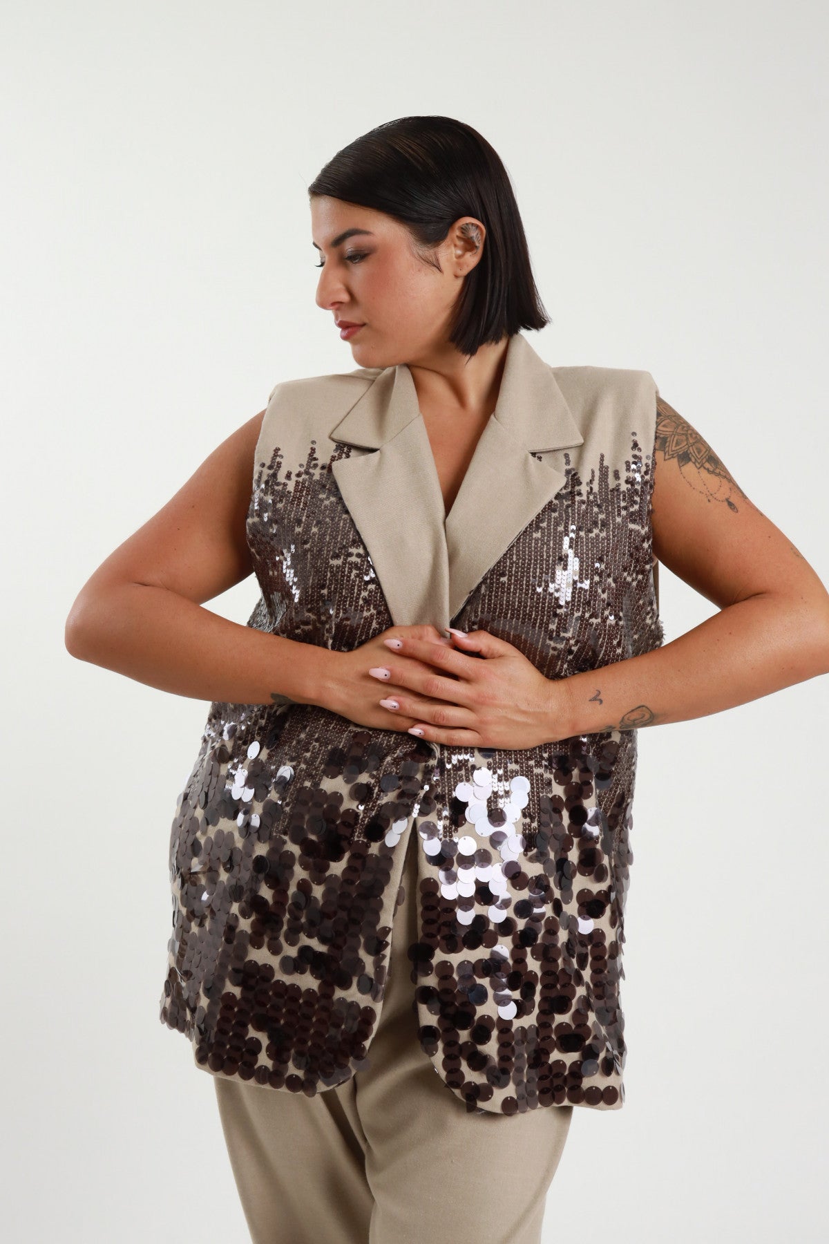 Gilet Over Monopottone con Paillettes Davanti a Cascata - Linea Curvy Susy Star.