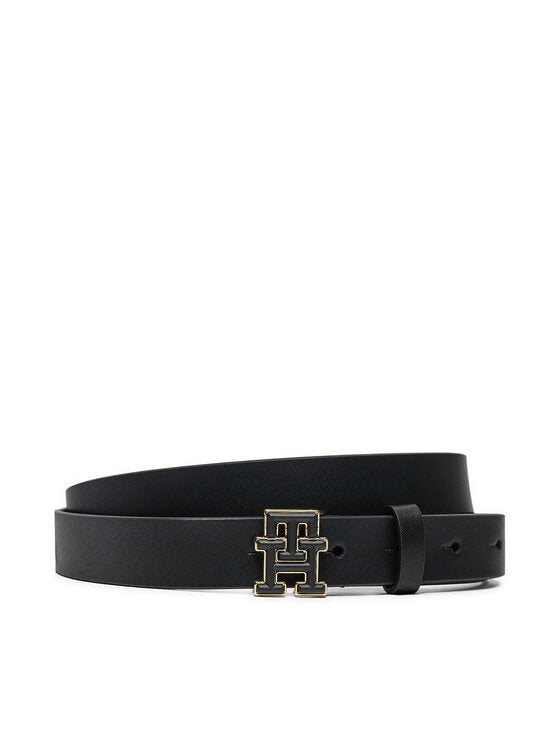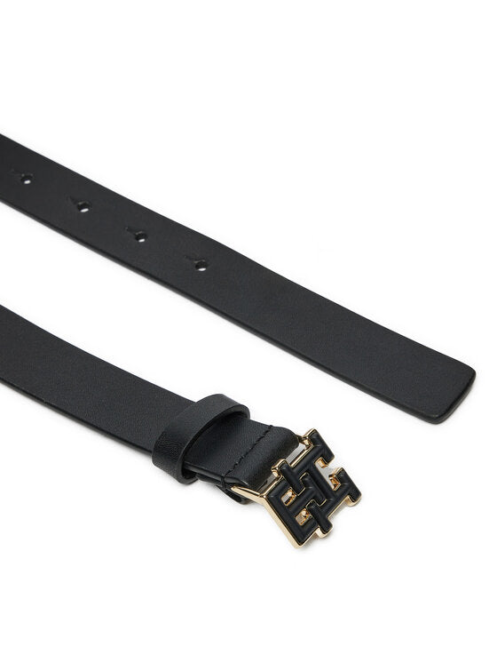 TOMMY HILFIGER Cintura donna in pelle nera sottile con fibbia monogram